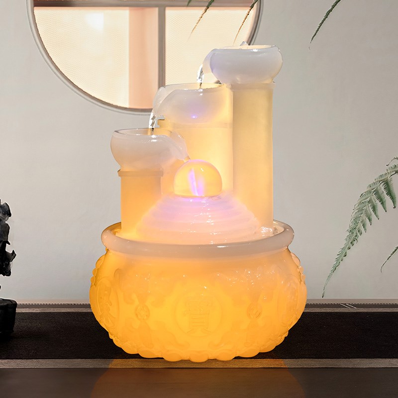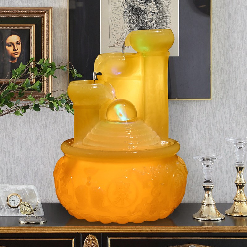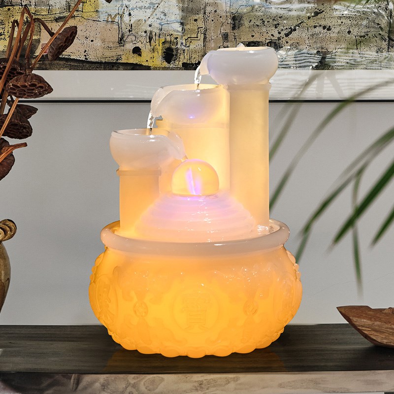 现代高级感客厅玄关循环流水招财摆件中式水幕开业转运球造景装饰