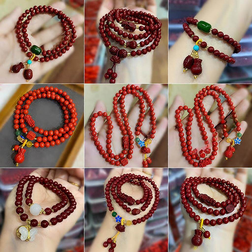 朱砂三圈手链项链女招财貔貅手串弹力红色古民族风长款个性