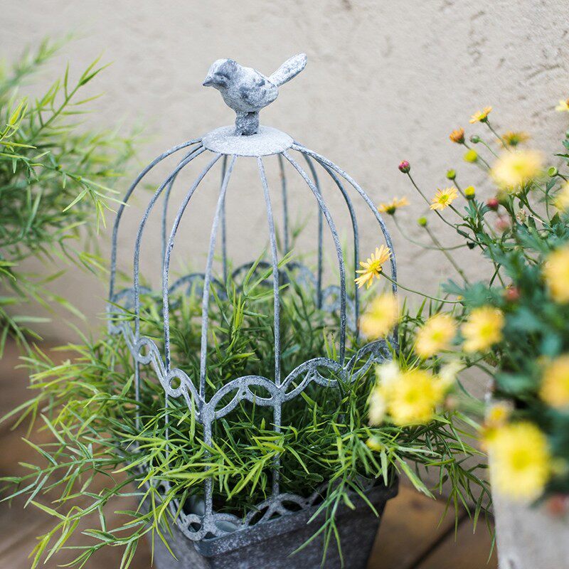 掬涵 复古鸟笼花器装饰摆件爬藤花盆欧式美式花园庭院乡村田园