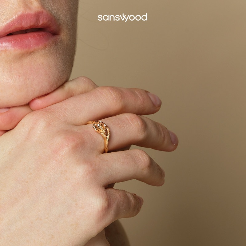 sanswood《马蹄莲》原创设计感花朵戒指女纯银精致轻奢镶钻锆石指
