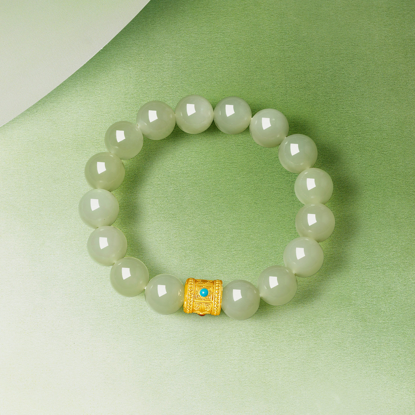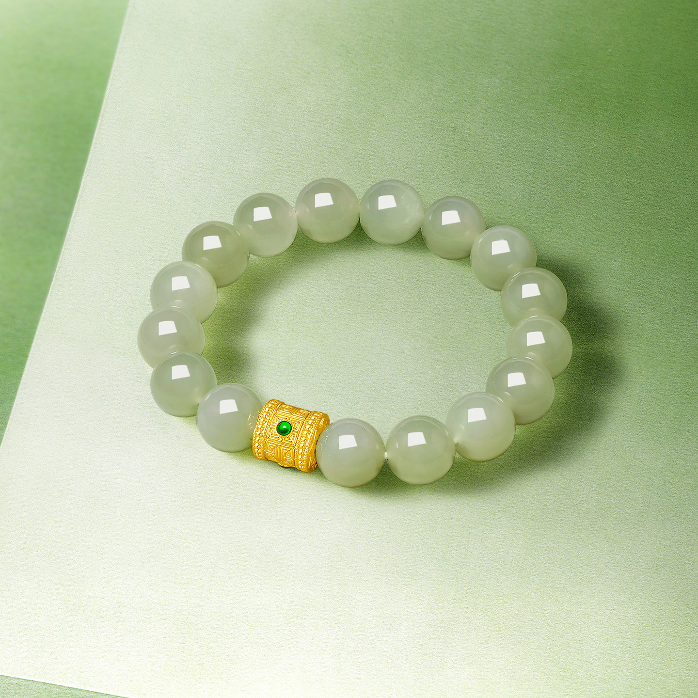 周六福金镶玉手串女款黄金玉石如玉回纹手链官方旗舰店新年礼物