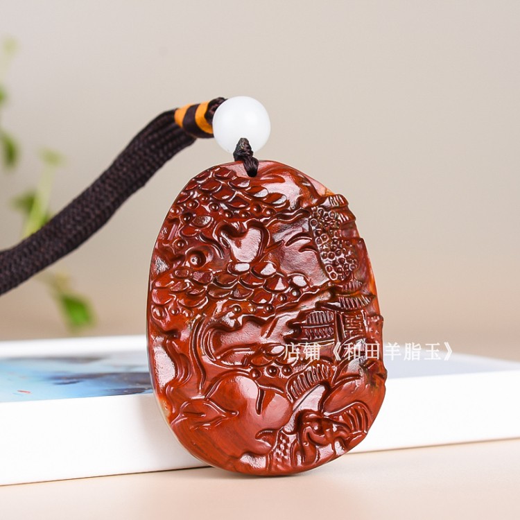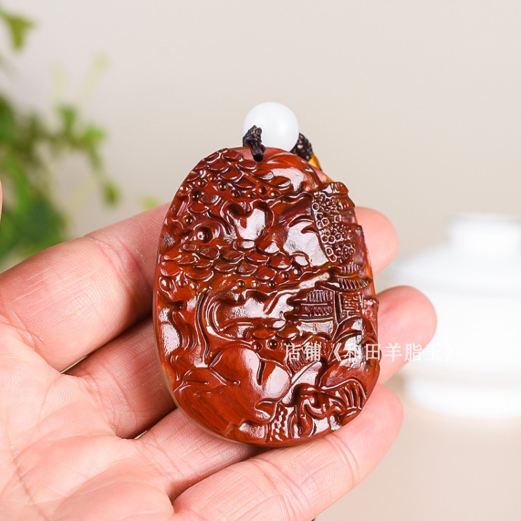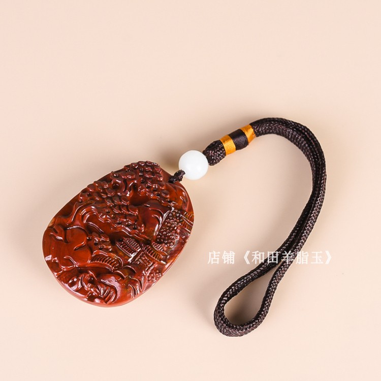 天然玉石新疆和田玉籽料山水牌手把件精雕大好河山把玩件挂件把件