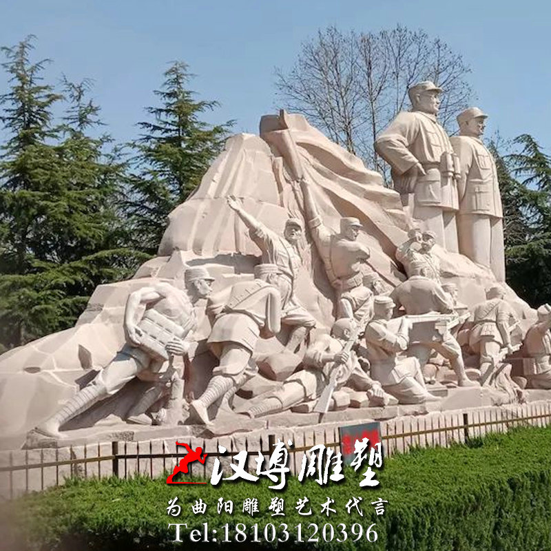 大型军人群雕制作广场公园邓小平刘伯承抗战主题花岗岩园林雕塑