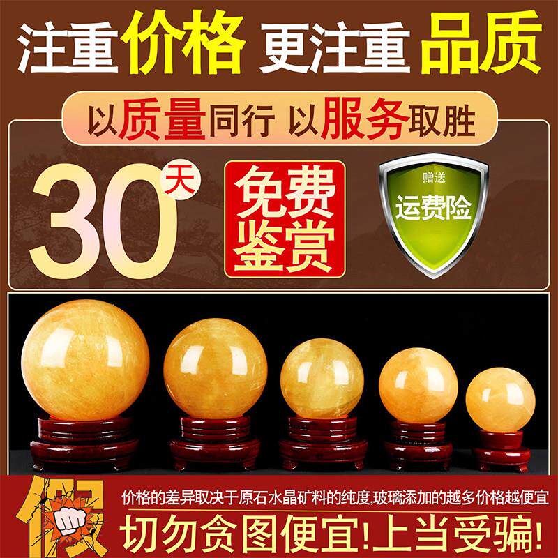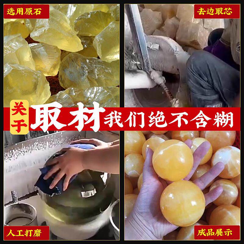 黄色水晶球白红色球天然方解原石招聚财客厅店铺开 业家居装饰摆