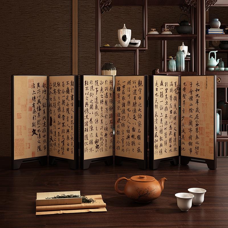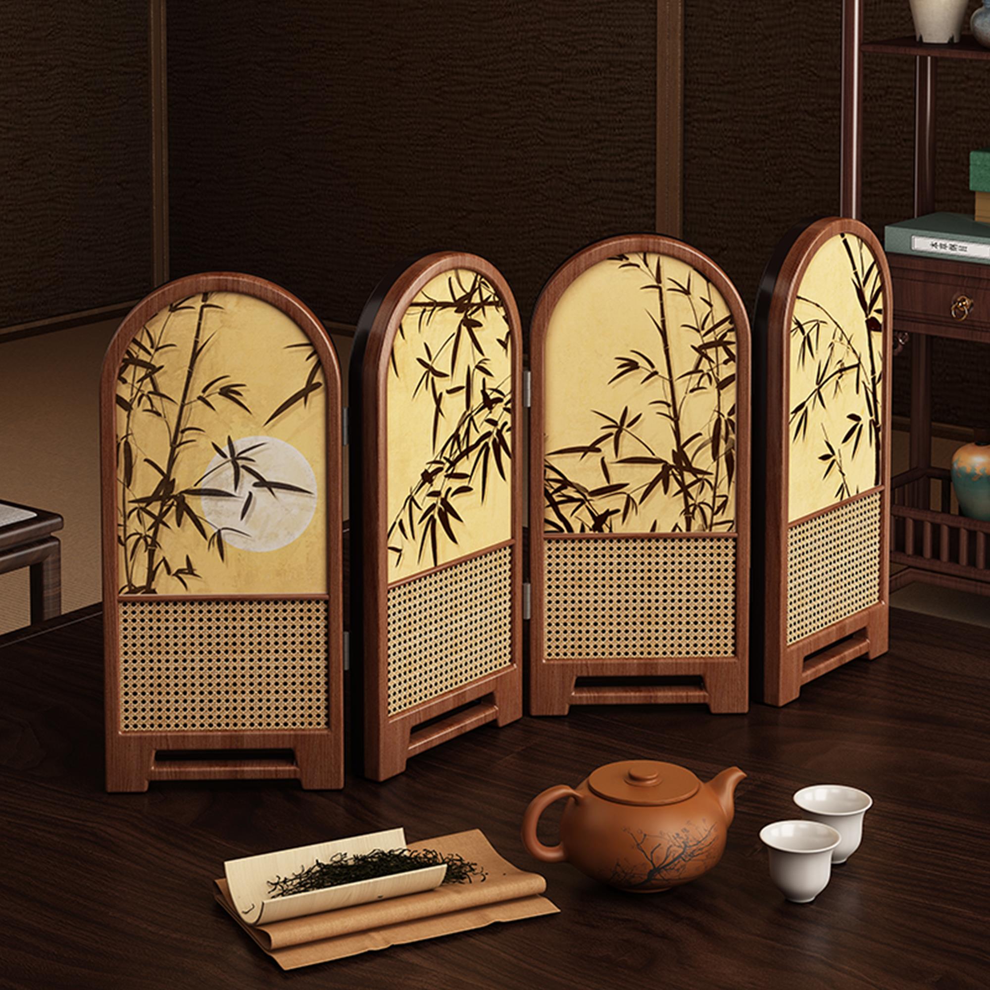 中古风墨竹小屏风桌面摆件新中式玄关装饰品复古摆画茶桌家居边柜