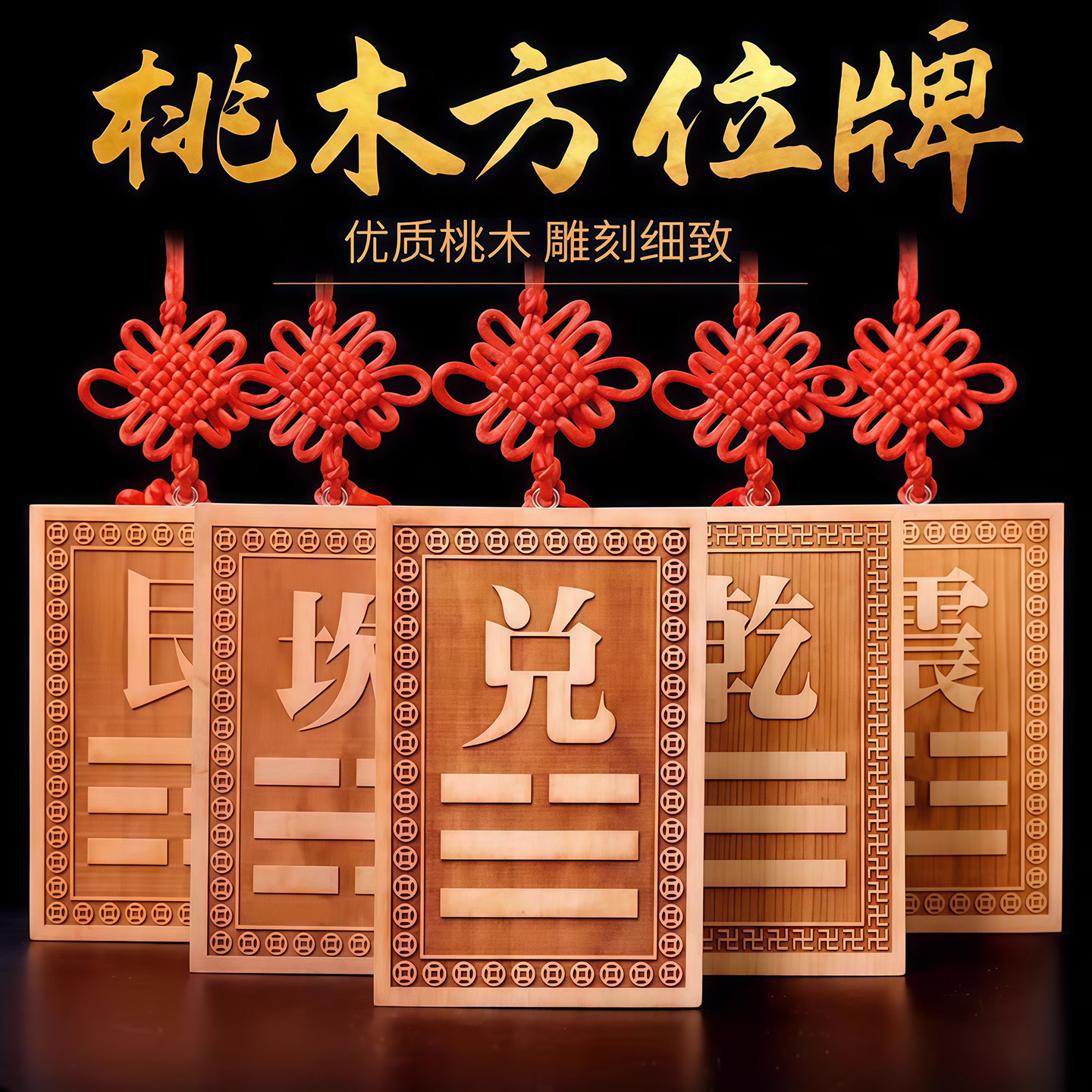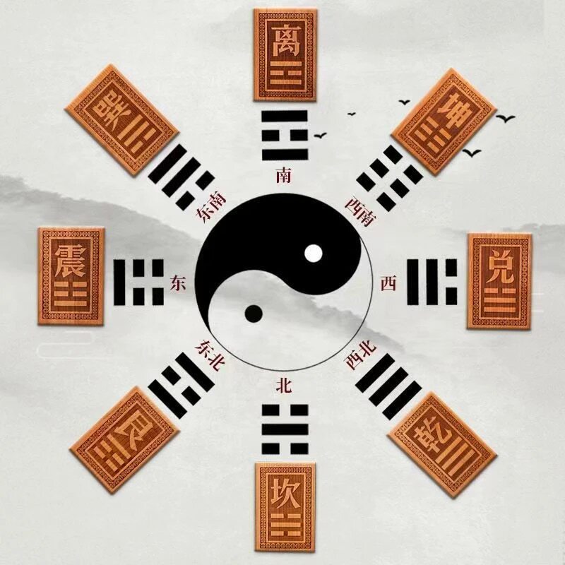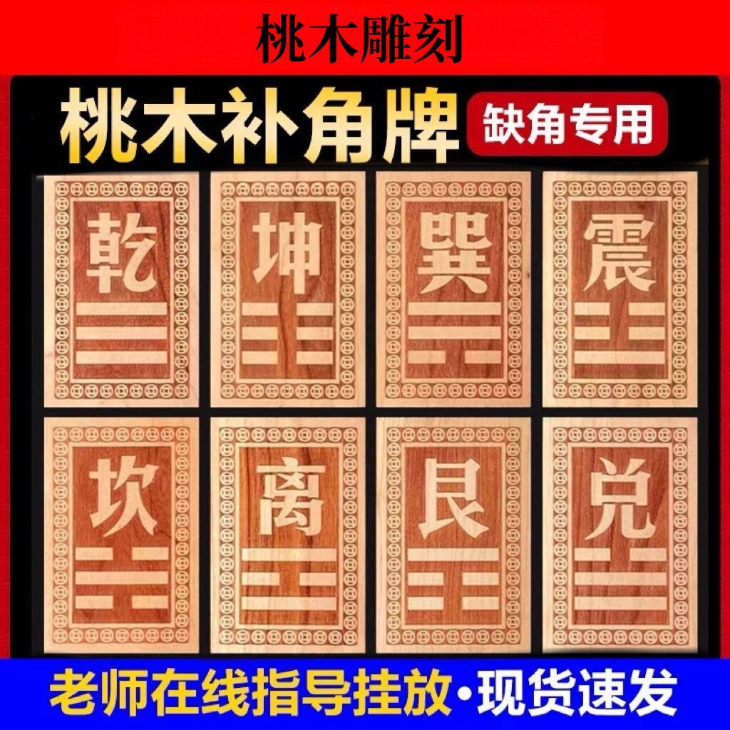 桃木房屋缺角补角牌挂件东南缺角巽卦坤字八卦牌坤卦震艮位乾兑离