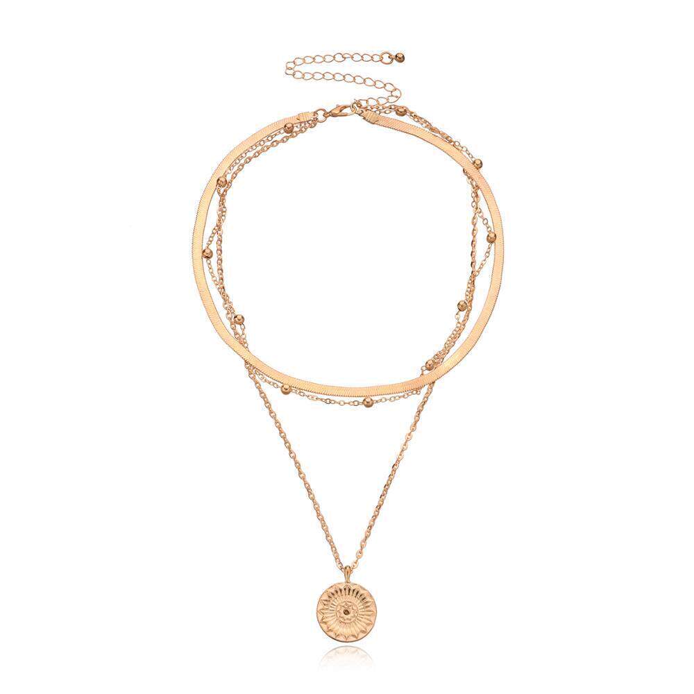Vintage Bohemia Gold Coin letter Layered Chain Necklace For