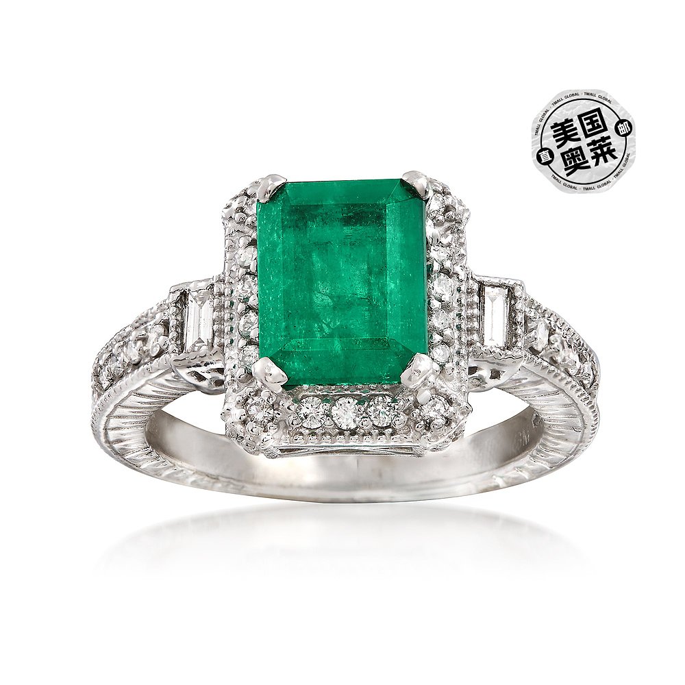 自营 ross-simons罗斯-西蒙斯翡翠和 . 14kt 白金钻石戒指 绿色