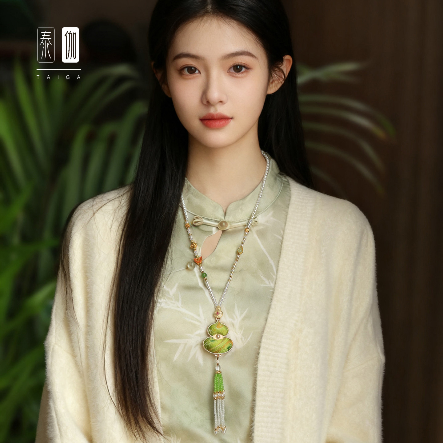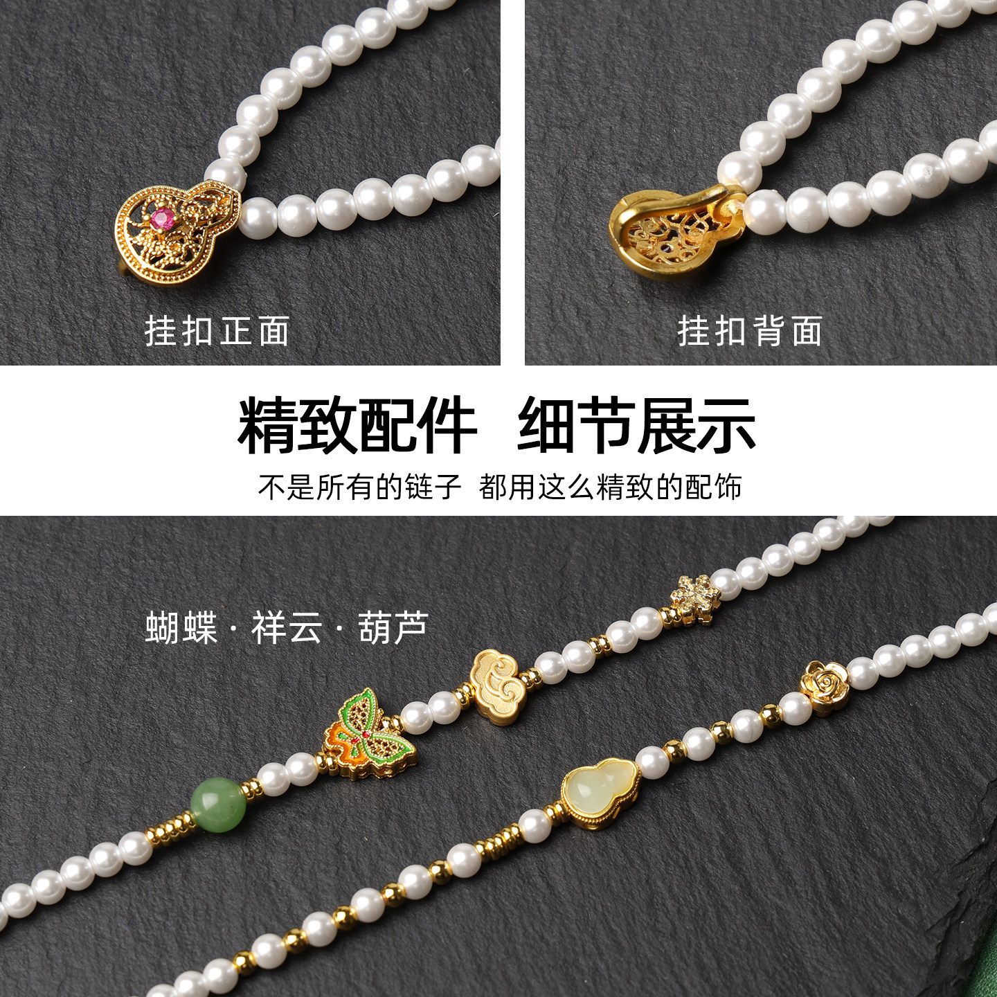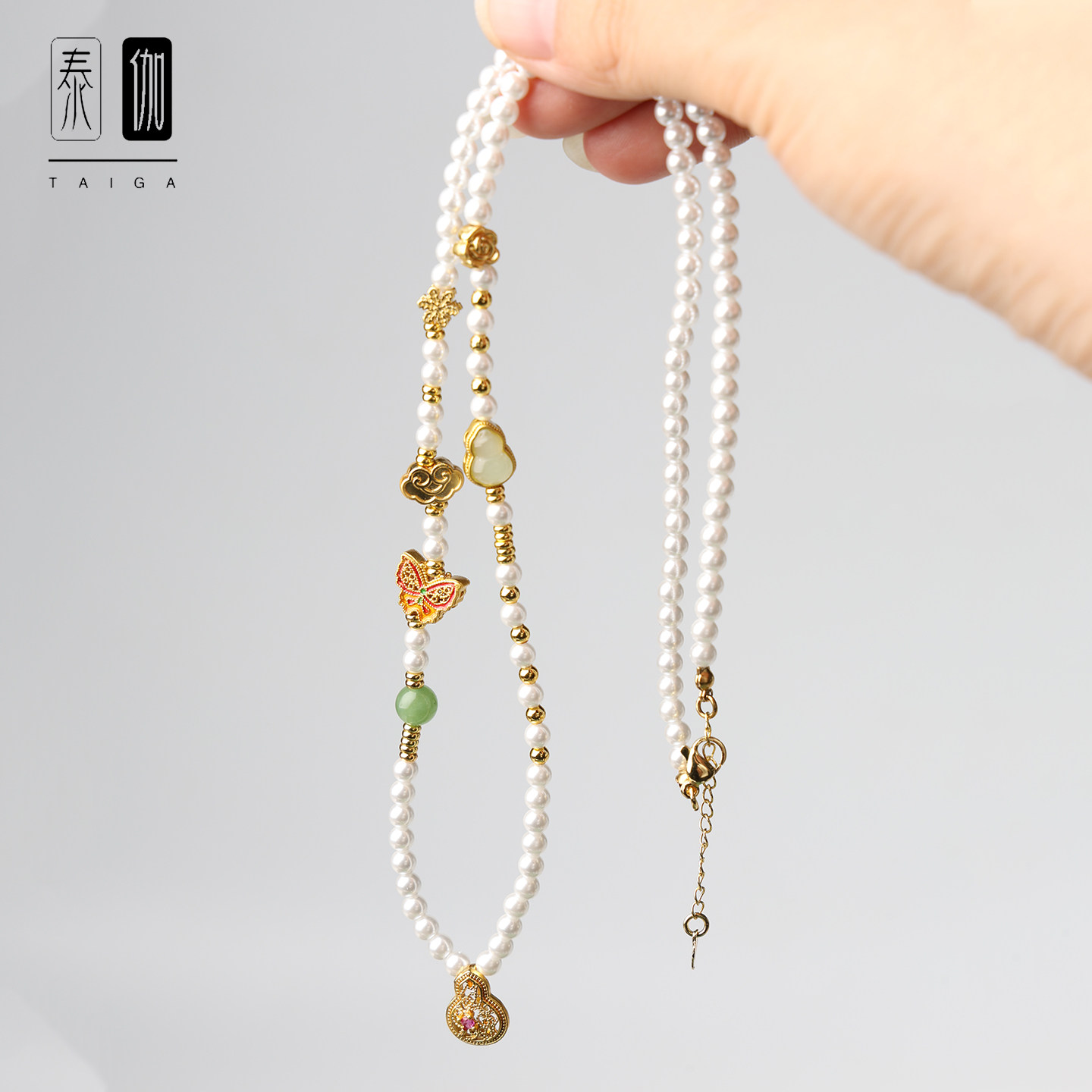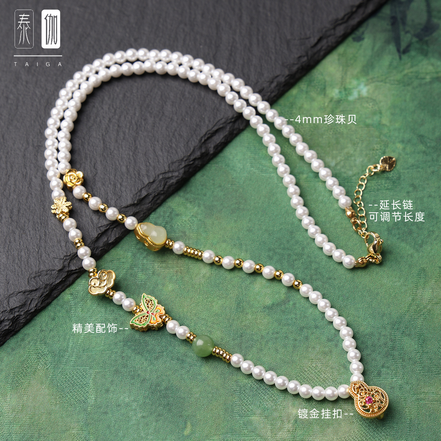 泰伽珍珠贝宋锦葫芦吊坠链佛牌链子新中式国风旗袍配件毛衣链女款