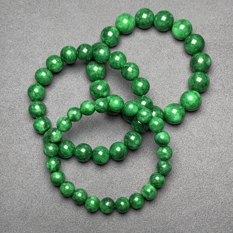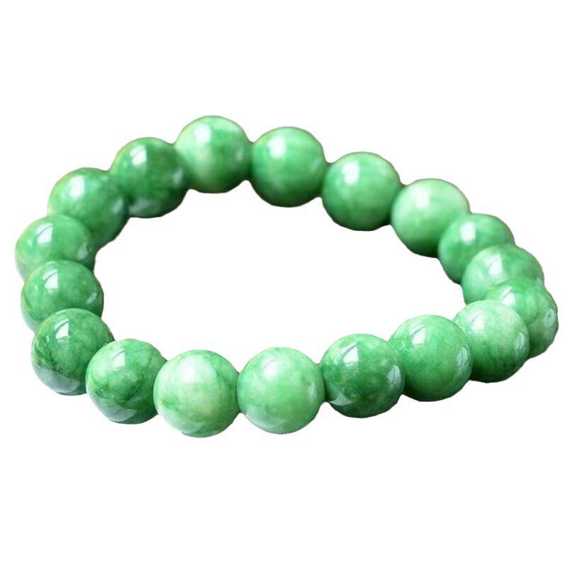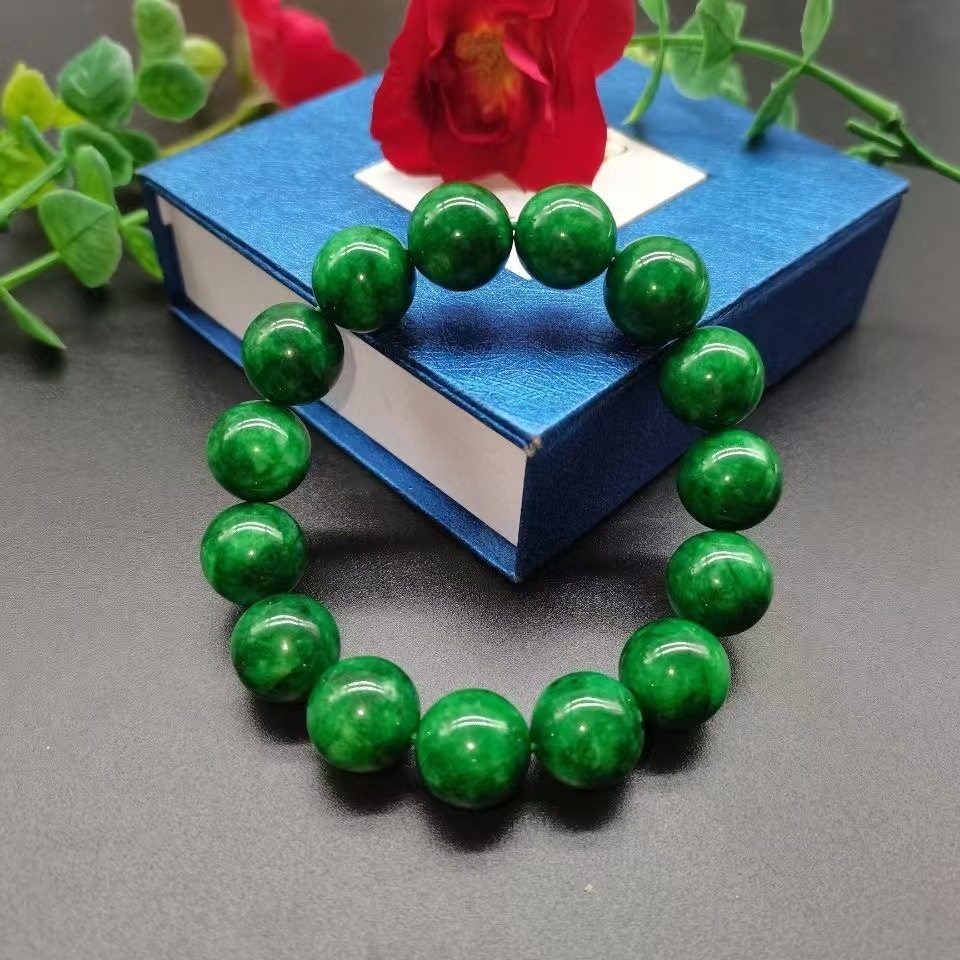 爆款仿翡翠干青铁龙生翠玉圆珠手链手串男女款阳绿色花绿色手链批