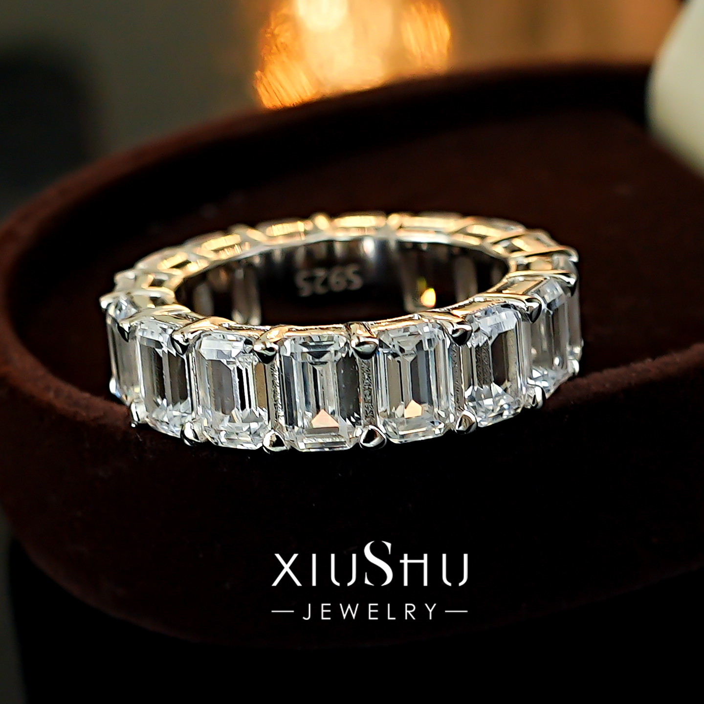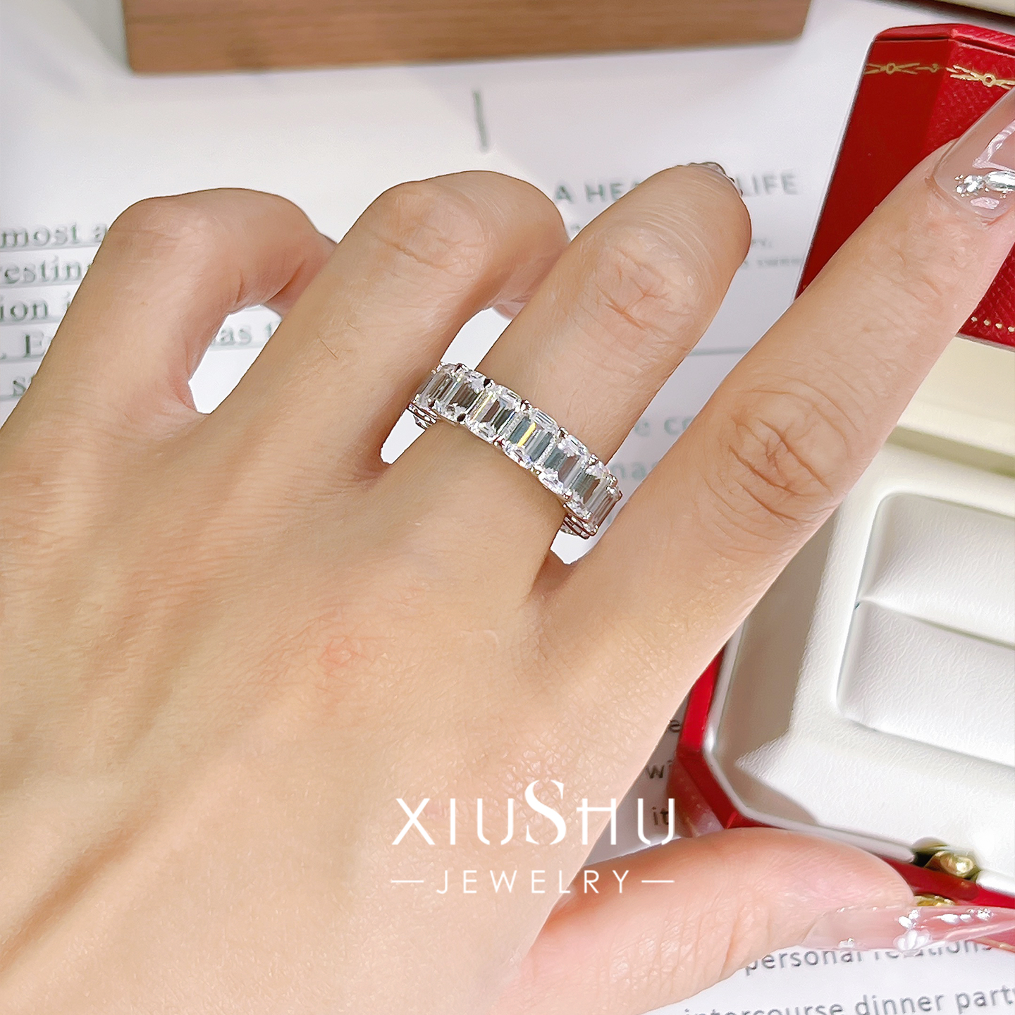 爆闪《冰透 》满钻925银冰糖指环祖母绿切戒指食指叠戴情侣款新款