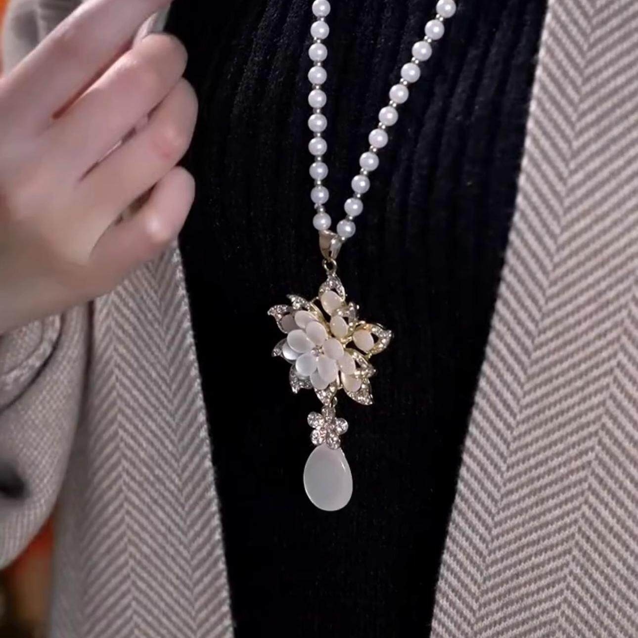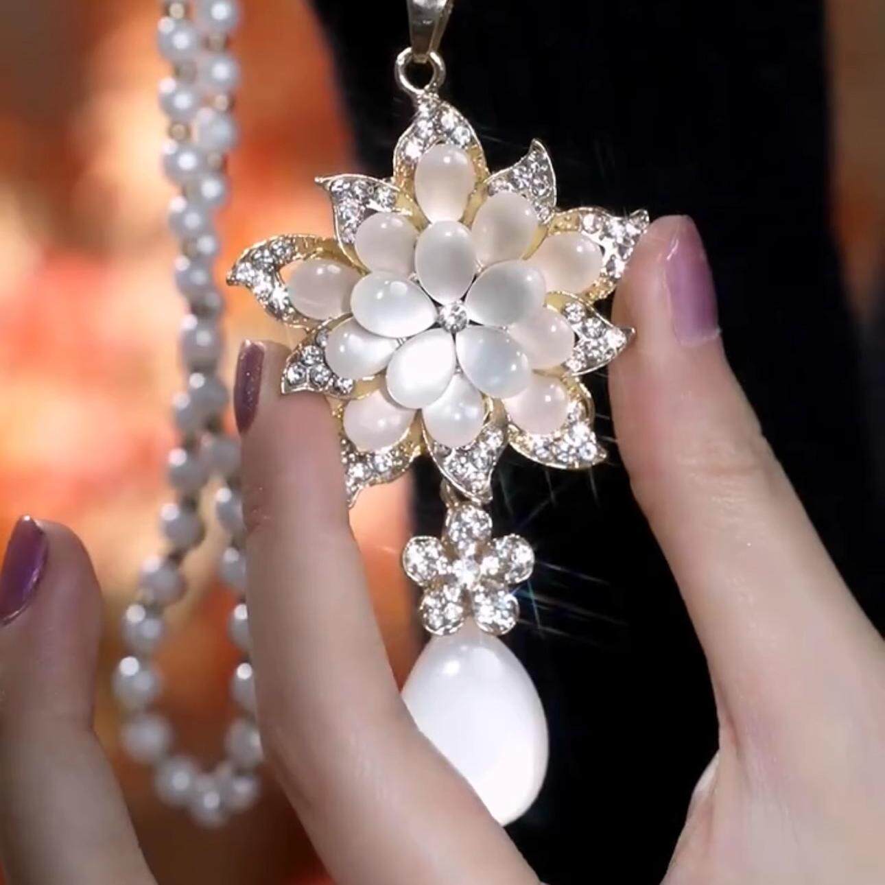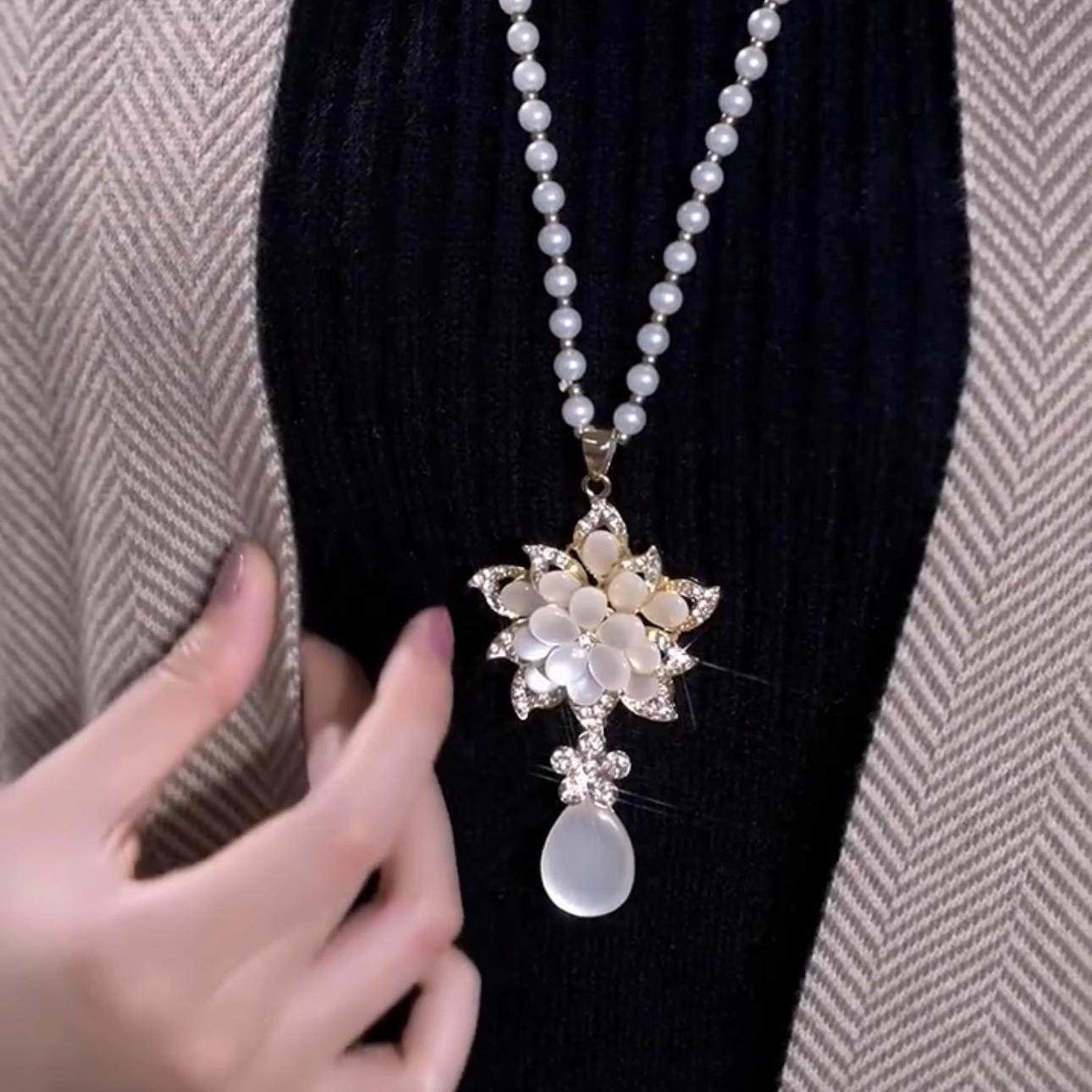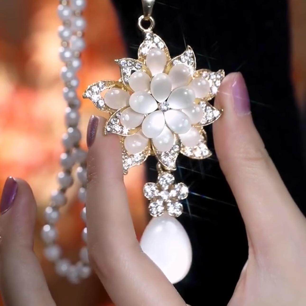 新款百搭猫眼石大气毛衣链女个性吊坠时尚长款项链衣服秋冬配饰品