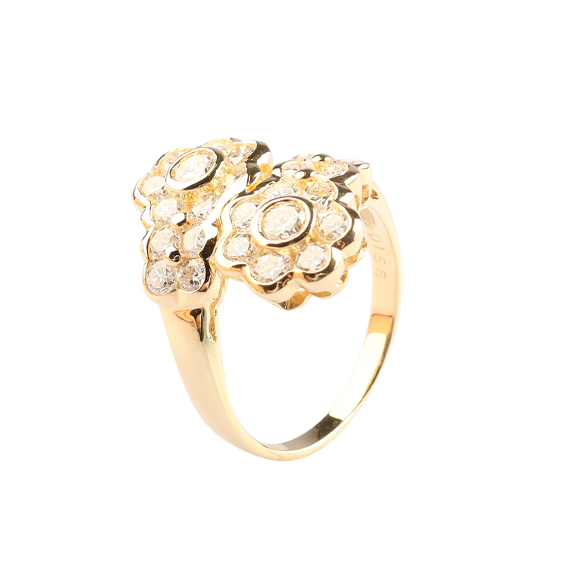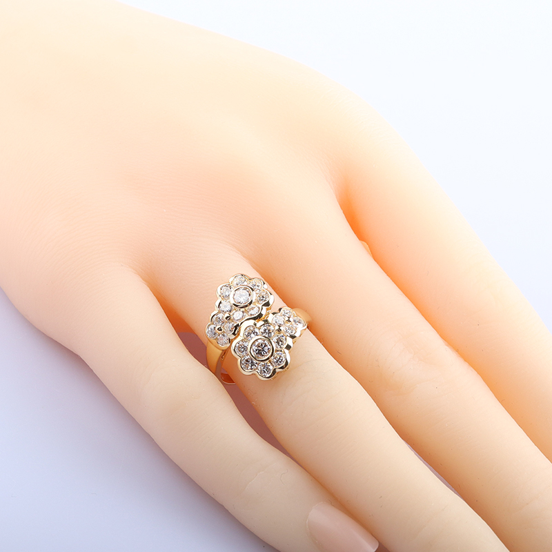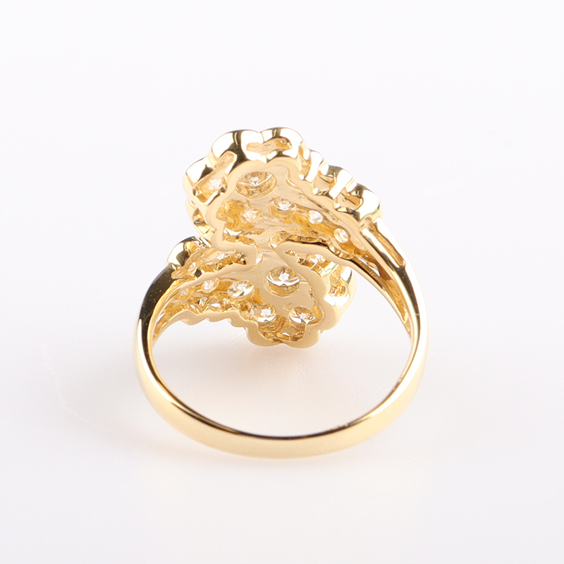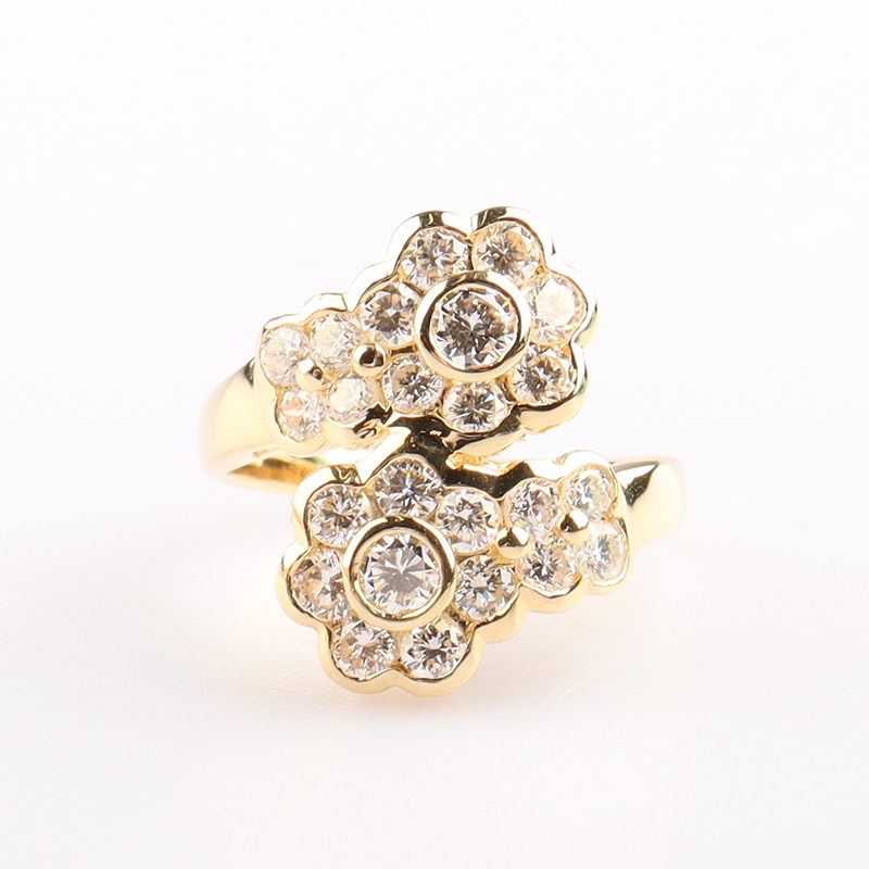 【自营】中古95新日本进口2个图案花形群镶钻石K18黄金52号戒指