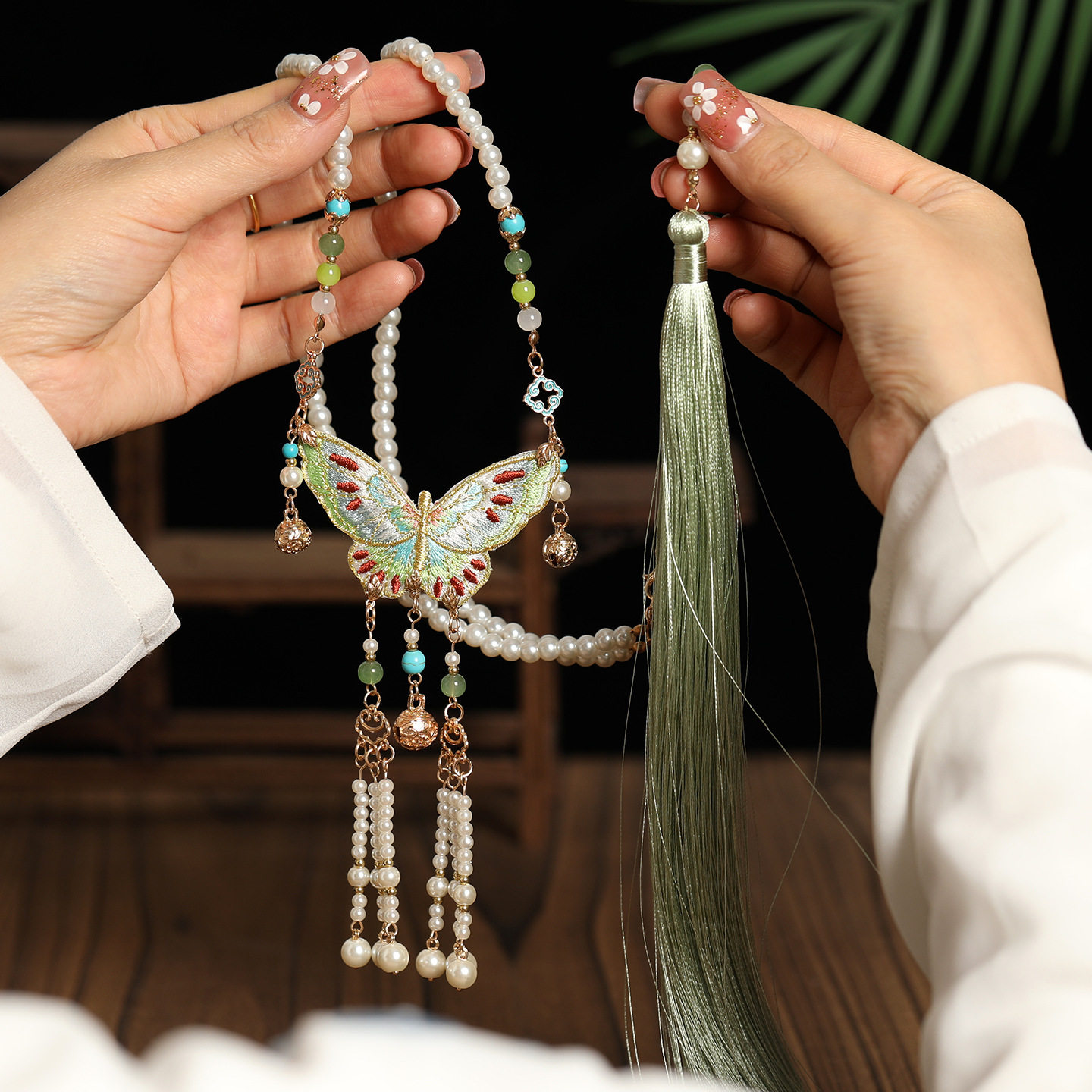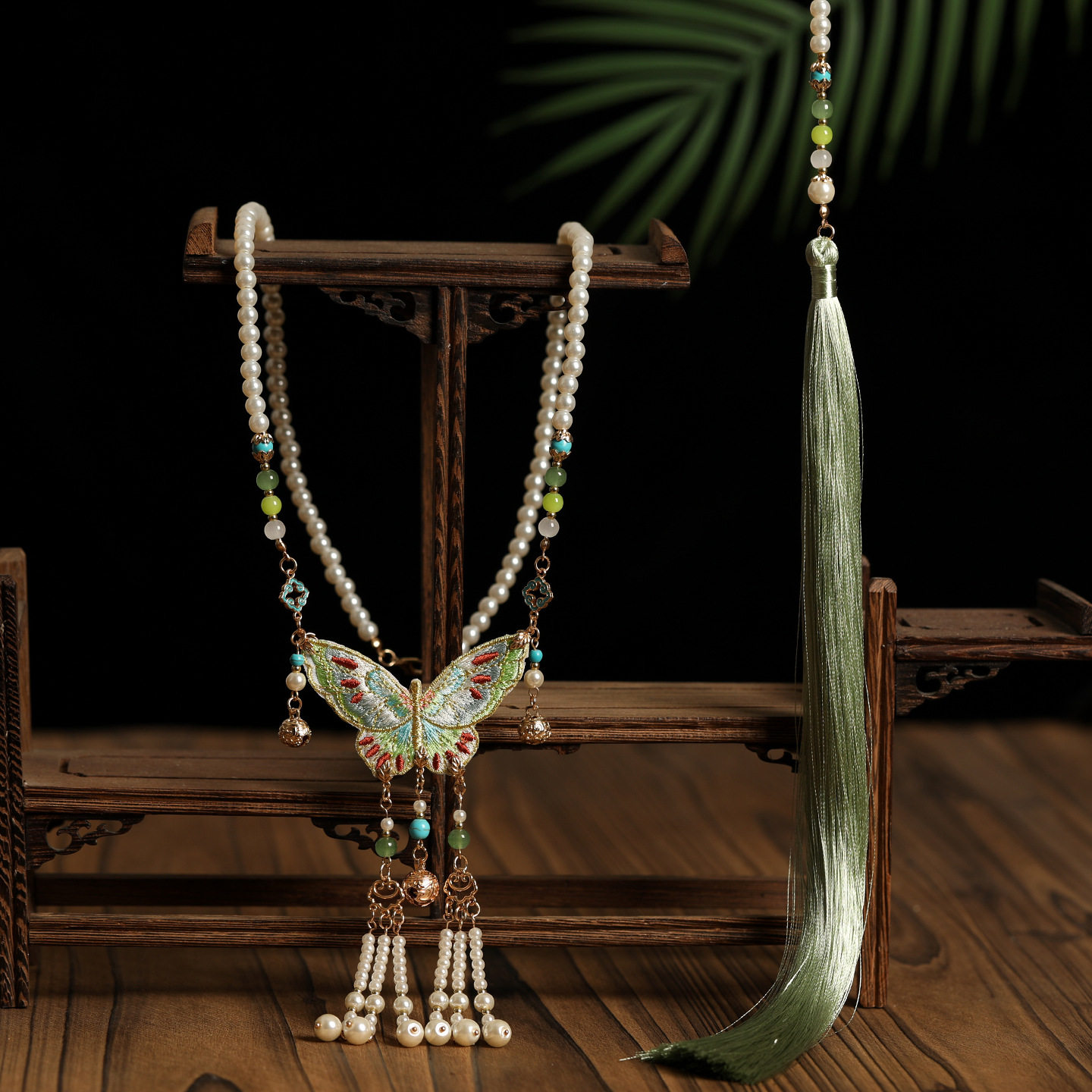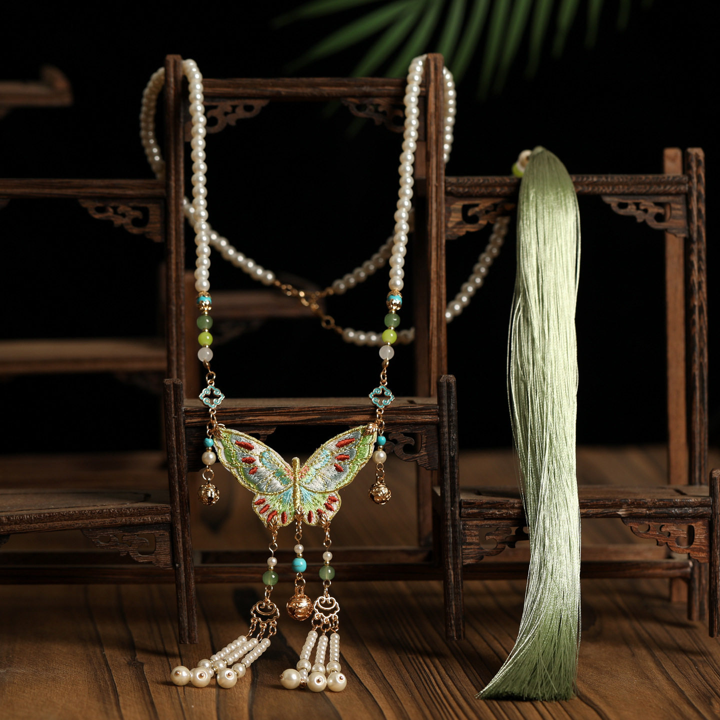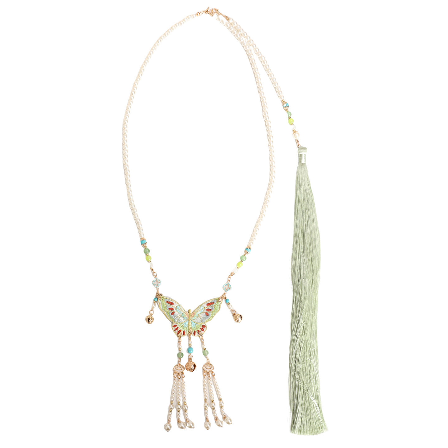 2026绿色刺绣蝴蝶长璎珞背云流苏衣链新中式马面裙配饰古风项链女