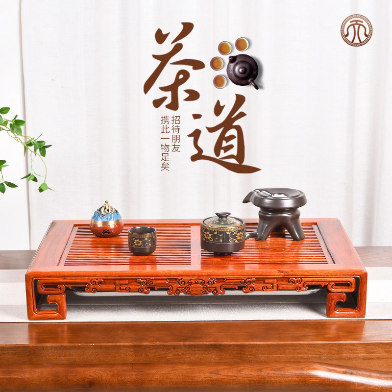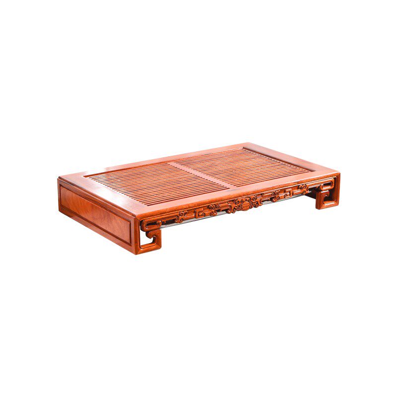 天纵缅甸花梨雕花线条茶盘实木中式储水式L茶台红木客厅家用泡茶