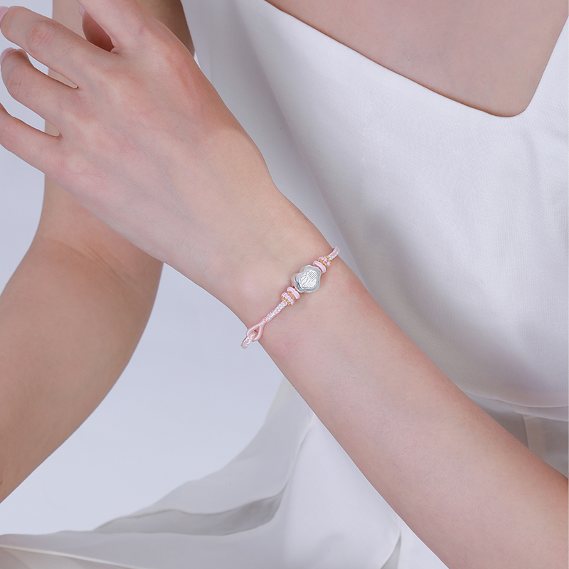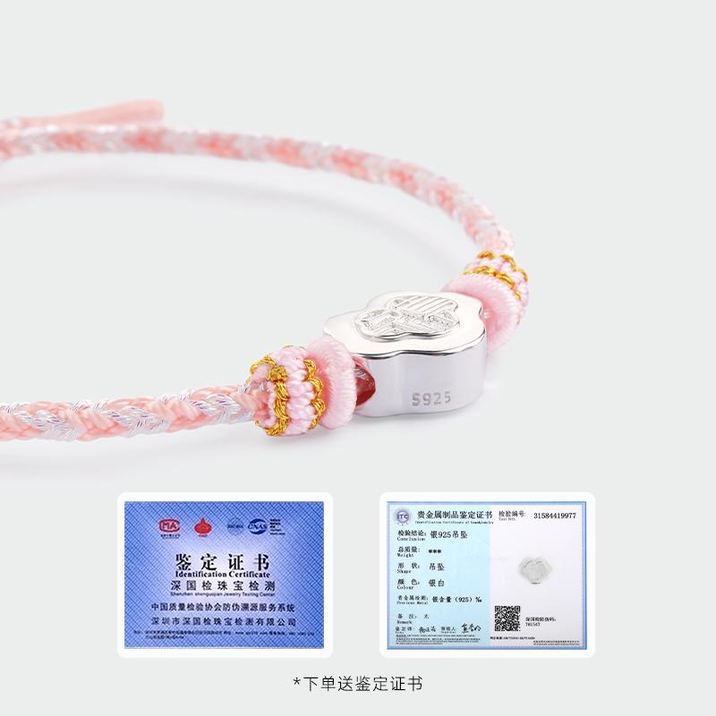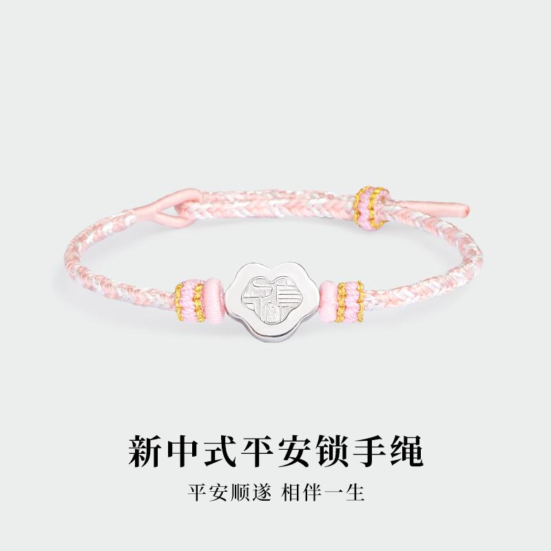 炙真银楼平安喜乐 925纯银平安锁手链女新中式编织手绳礼物送女友