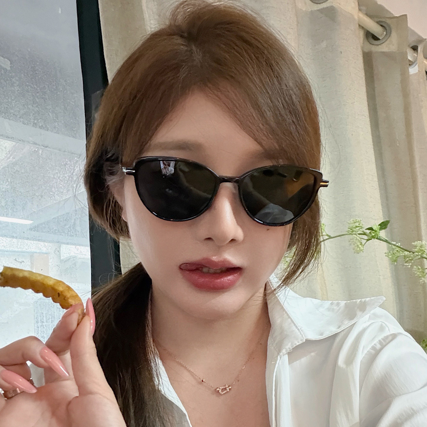 港风复古黑色猫眼偏光墨镜女街拍方圆脸显瘦氛围感夏季遮阳太阳镜