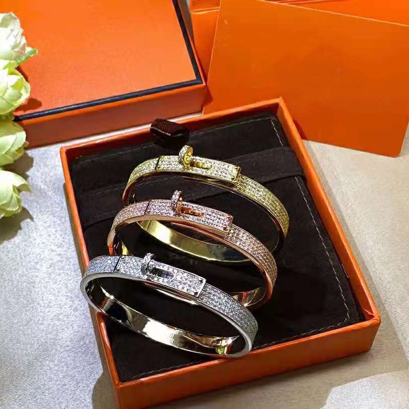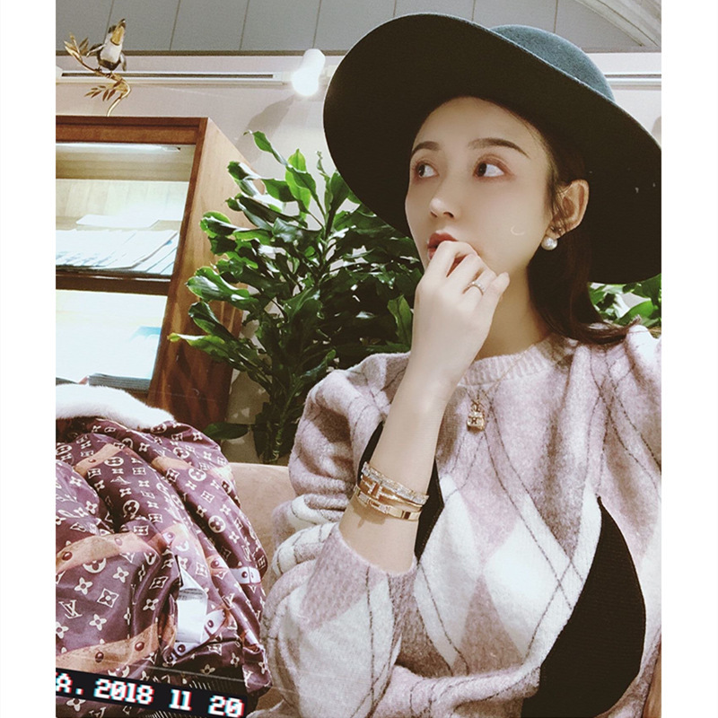 欧美H字母凯丽满钻半钻手镯气质V金镀18K玫瑰金色猪鼻子情侣手环