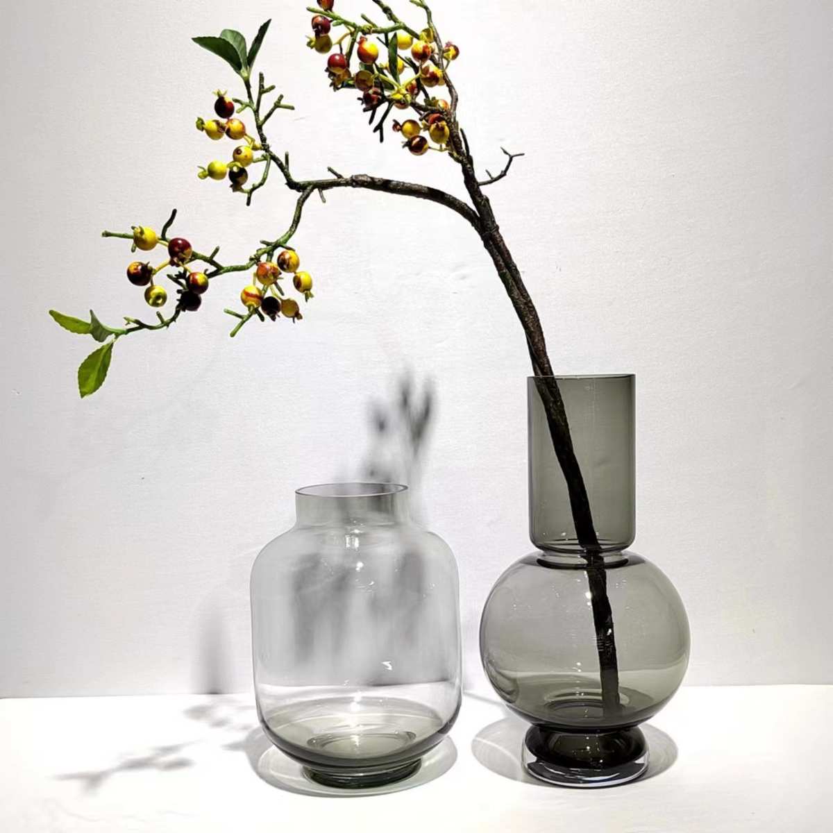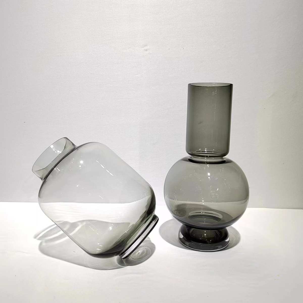 现代简约创意艺术灰色异形玻璃花瓶家居样板房餐厅桌面插花摆件