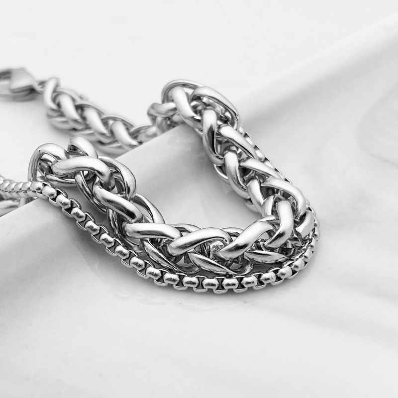 王鹤棣同款古巴龙骨手链男士双层叠戴潮流痞帅轻奢高级感钛钢饰品