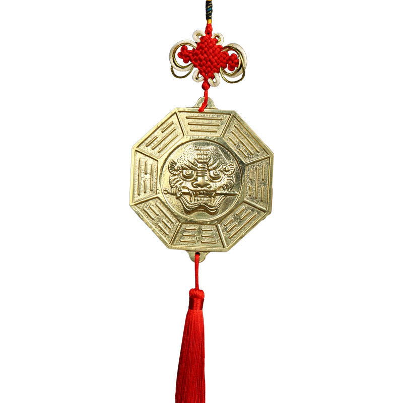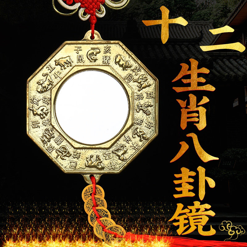 纯铜虎头镜八卦镜十二生肖八卦镜玻璃平面狮咬剑镜子门冲门口挂件