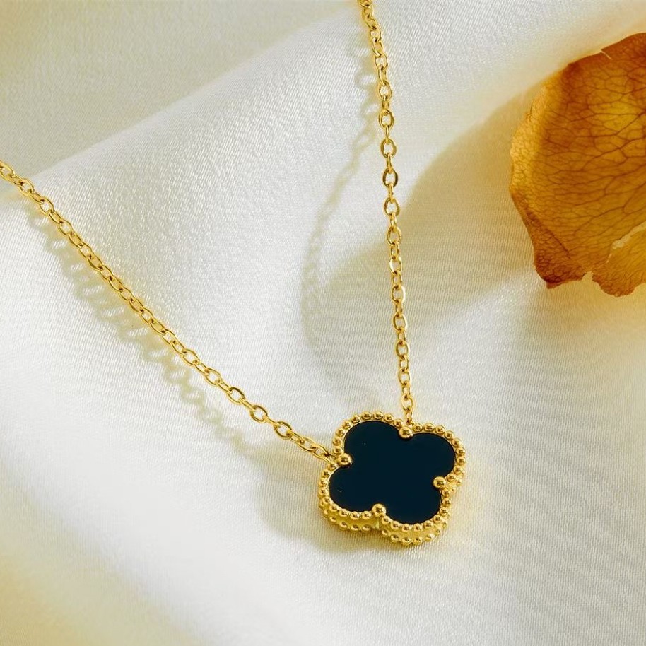 钛钢项链 红色幸运草项链简约轻奢双面秋冬新款小众百搭ins时尚