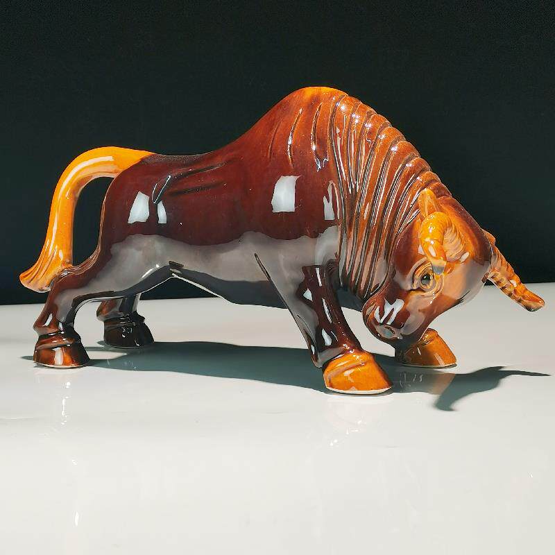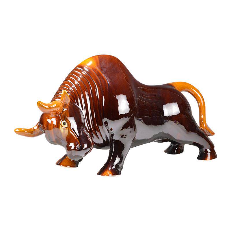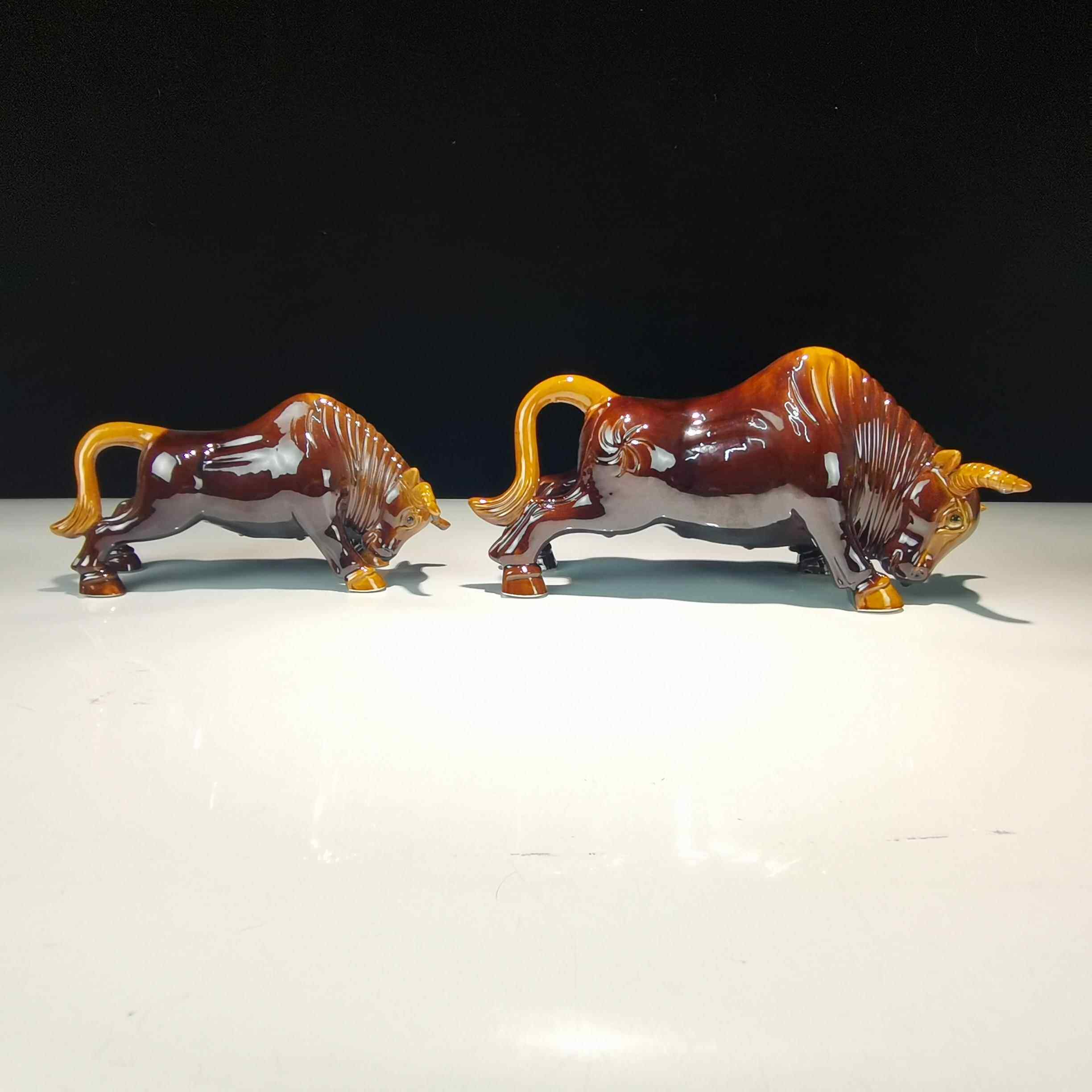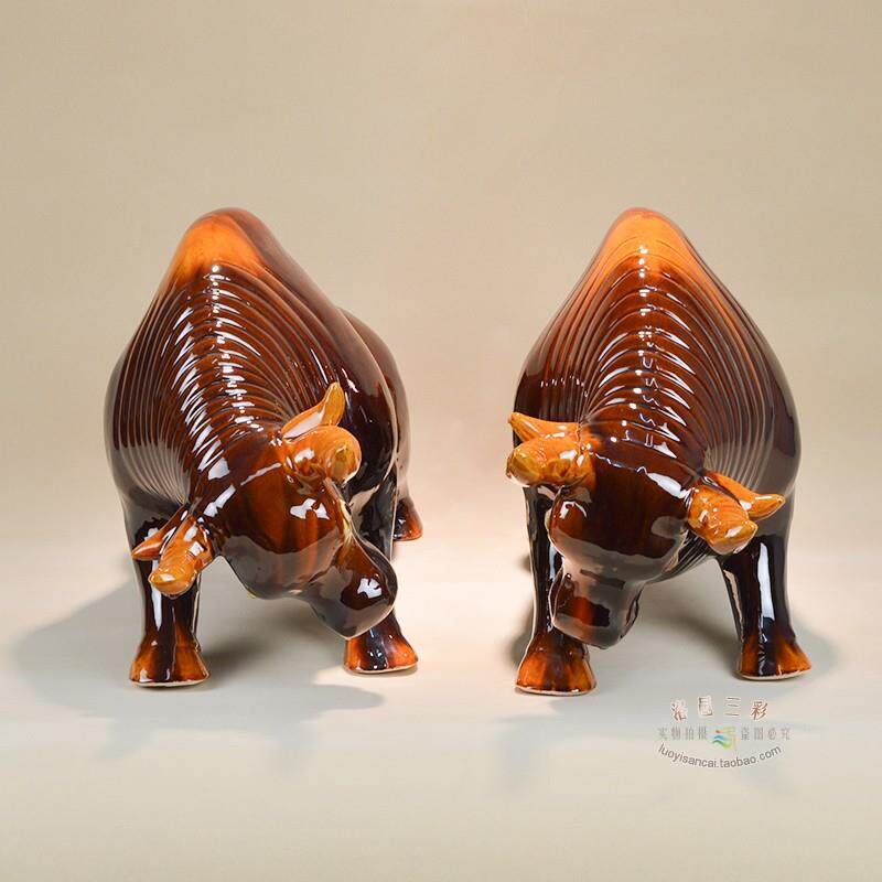 唐三彩陶瓷牛橙色褐色生肖动物大号摆件办公室家居新中式精致装饰