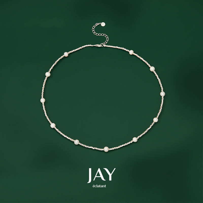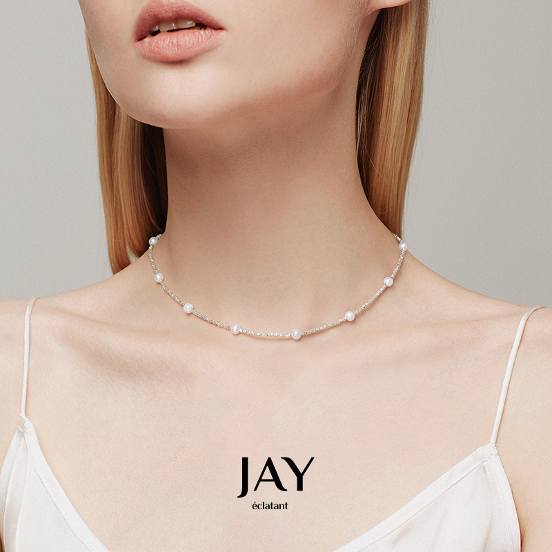 JAY碎银几两银项链轻奢小众chocker珍珠颈链小香风锁骨链生日礼物