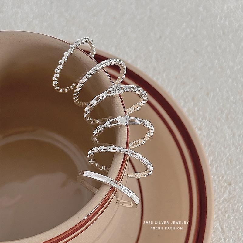 shunshun纯银镂空不规则设计感戒指女时尚气质极简开口可调节指环