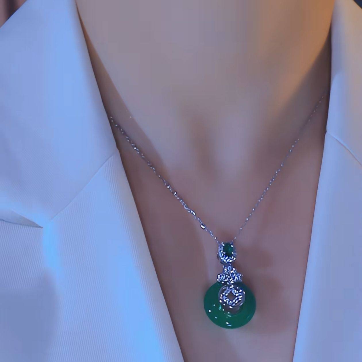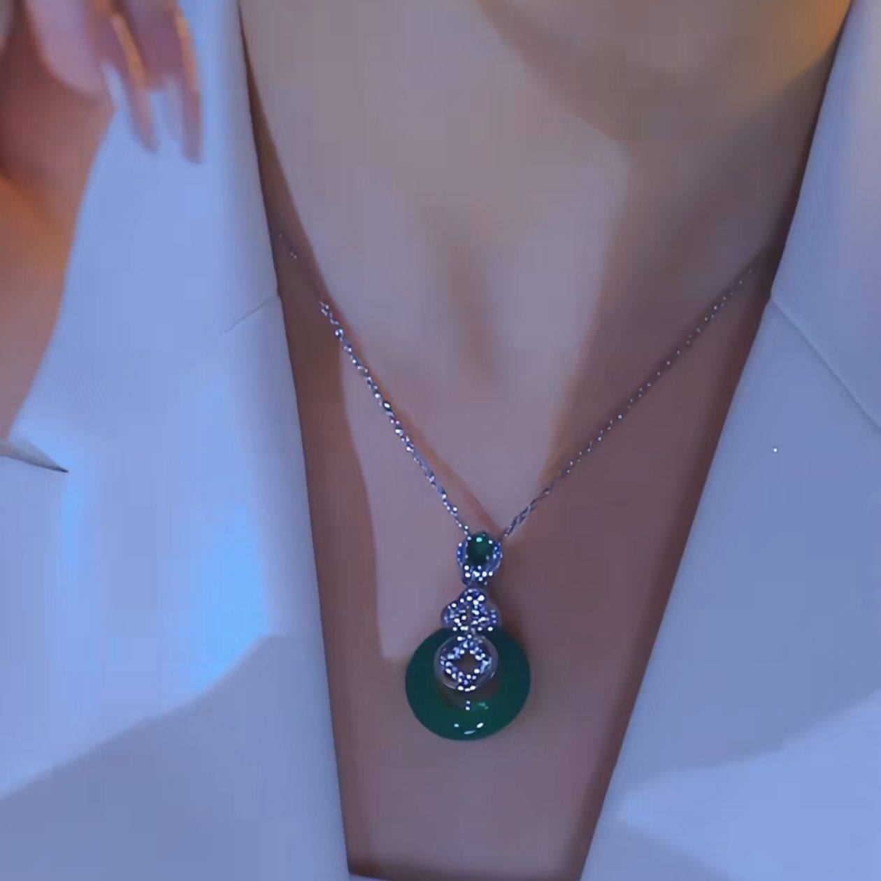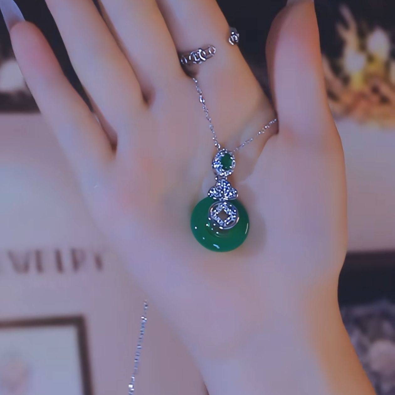 新款绿色钱币平安扣项链女气质国风轻奢百搭小众设计感爆款项链女
