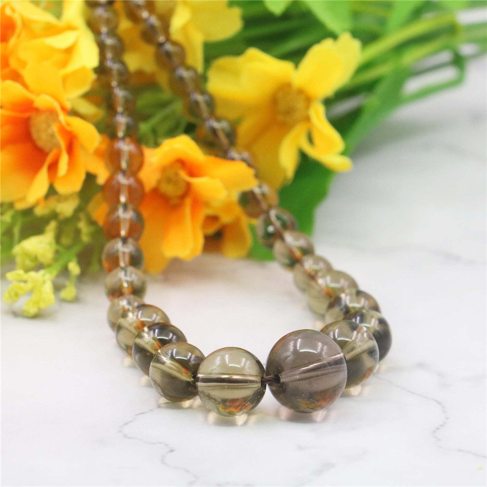 6-14mm圆珠塔链棕灰色微透玉髓项链 气质天然玉石短款项饰首饰女