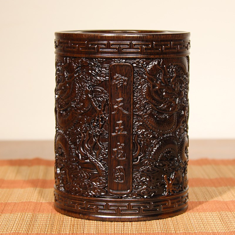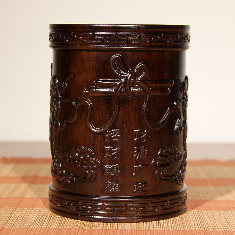 速发红木笔筒工艺木摆件品雕刻实木紫檀红酸枝黑檀木质笔花荷筒