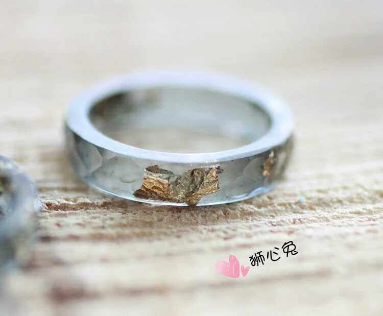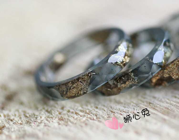 狮心兔浅灰色 金箔树脂刻面戒指 半透明戒指情侣 包邮