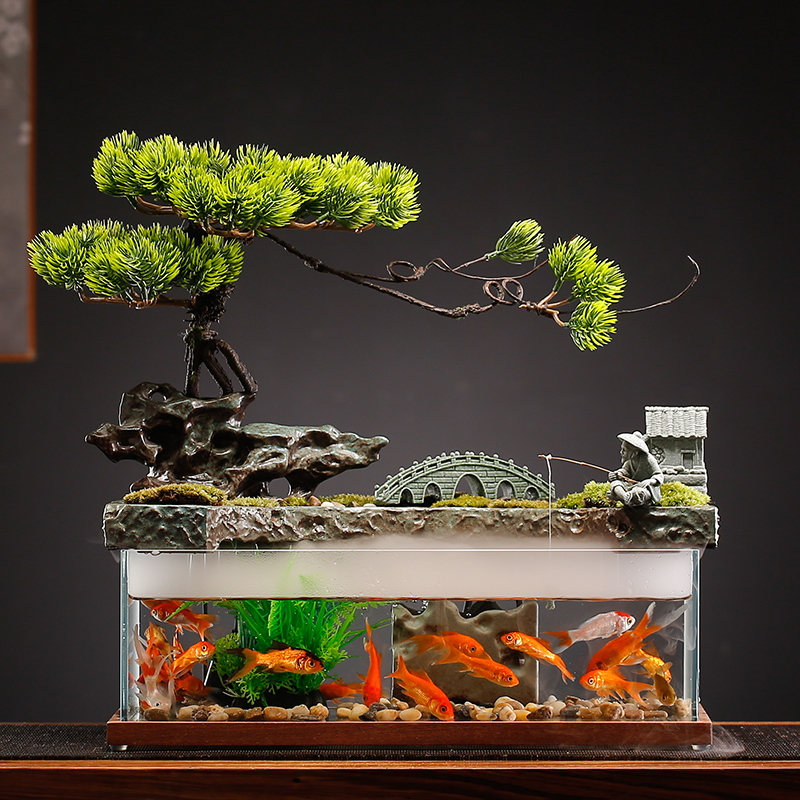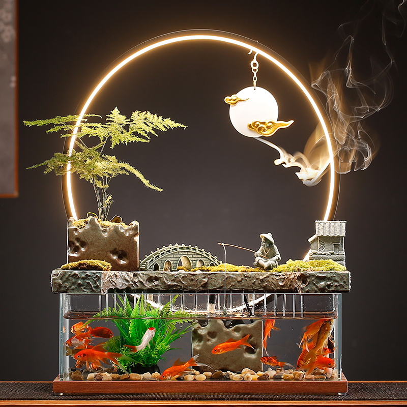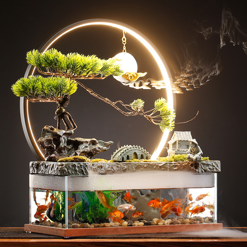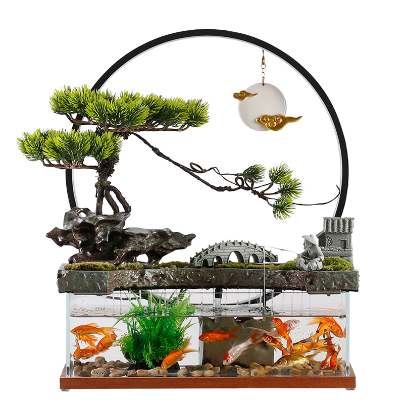 流水摆件招财鱼缸循环水生财客厅中式玄关办公室桌面乔迁开业礼品