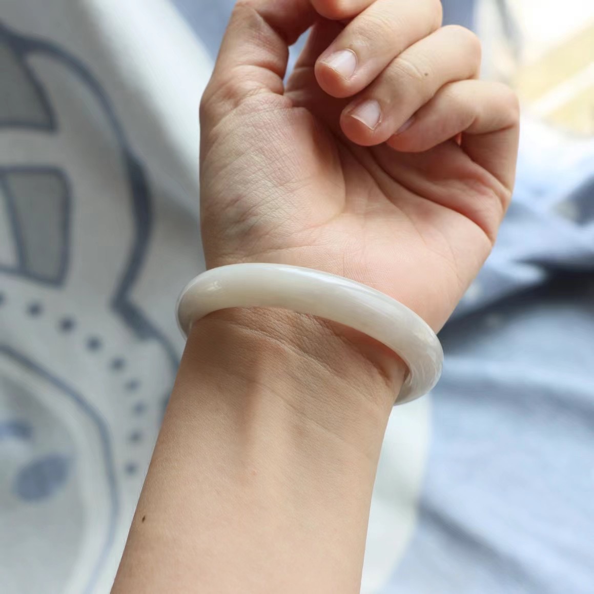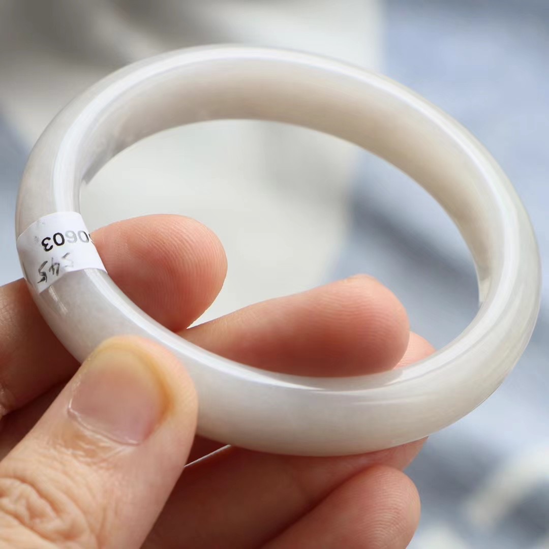 保真天然和田玉手镯54圈口证书编号6060324和田玉淡紫白色 青海料