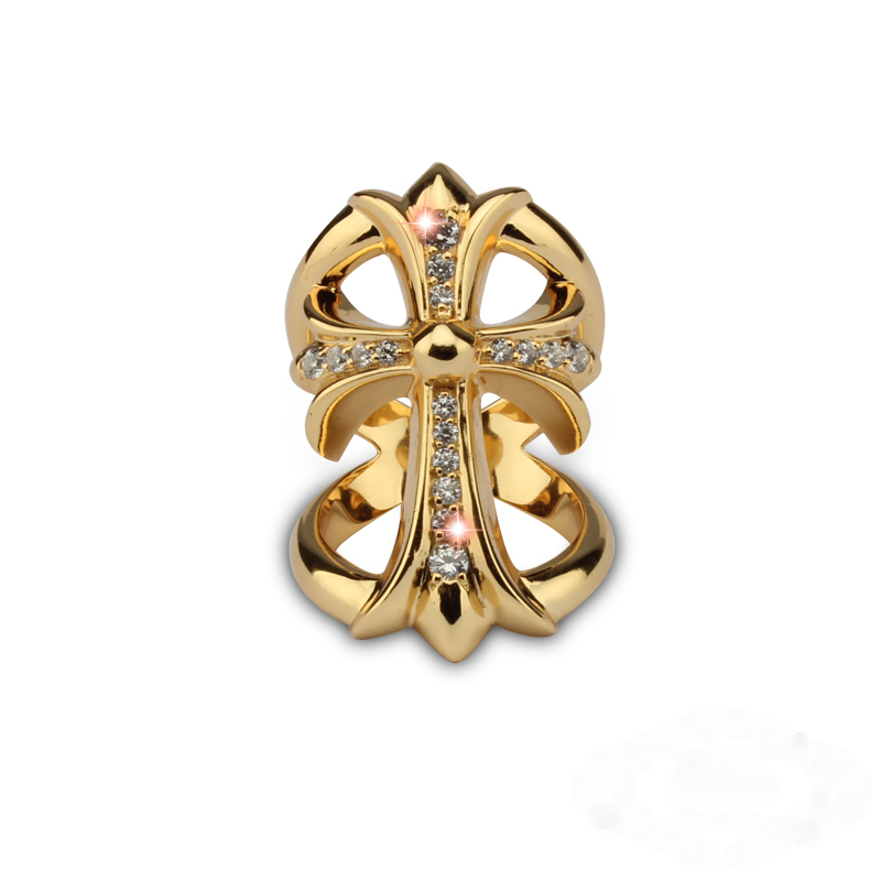 ROCK HEARTS 22K金戒指镂空十字架十字架黄金镶钻戒指周扬青同款