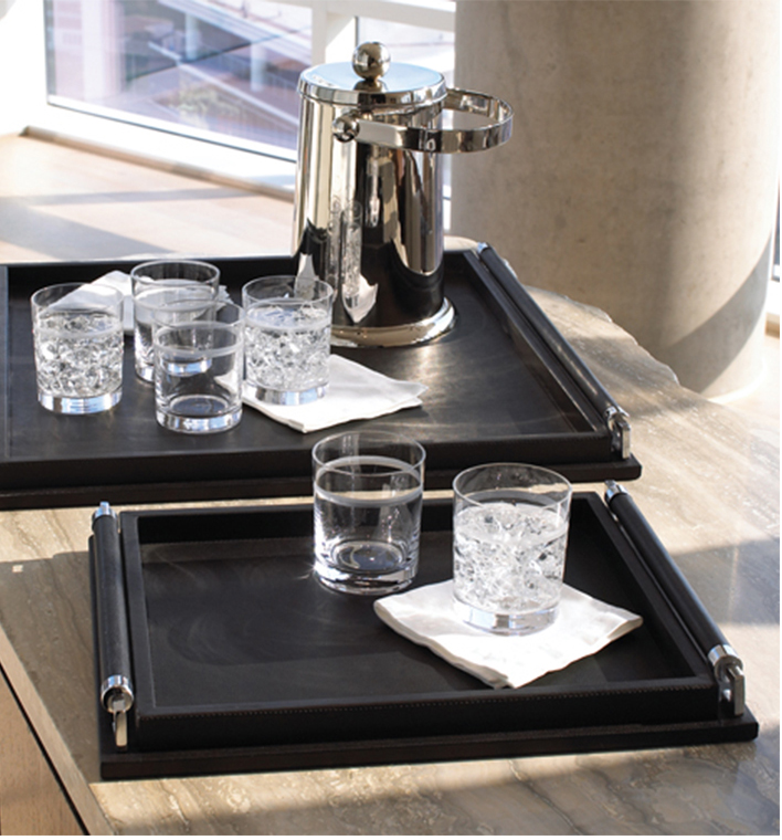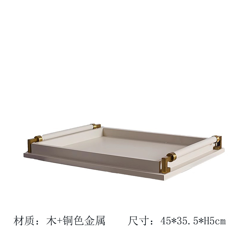 乳白色烤漆木质托盘茶盘简约家居摆设酒店黑色软装饰品样板间摆件
