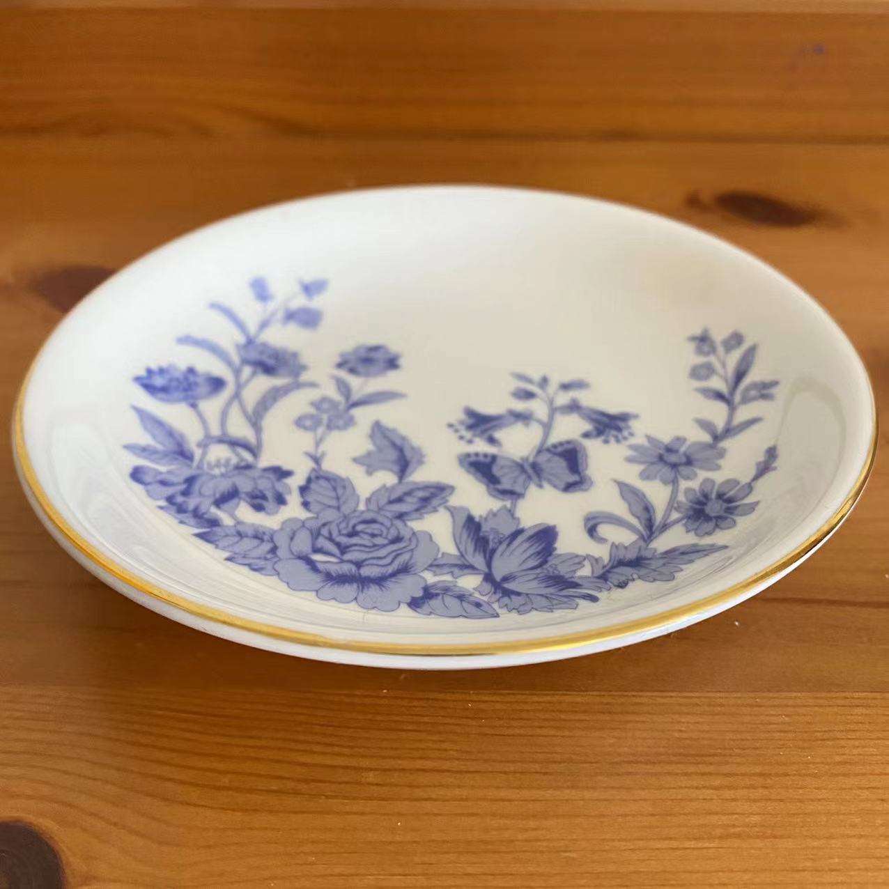 AYNSLEY 安兹丽 Cottage Blue 蓝色小屋骨瓷装饰小盘 英国 首饰碟