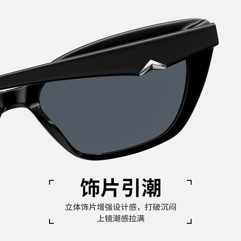 帕森太阳镜男女款复古潮流猫眼黑色窄框街拍防紫外线墨镜PZ12732