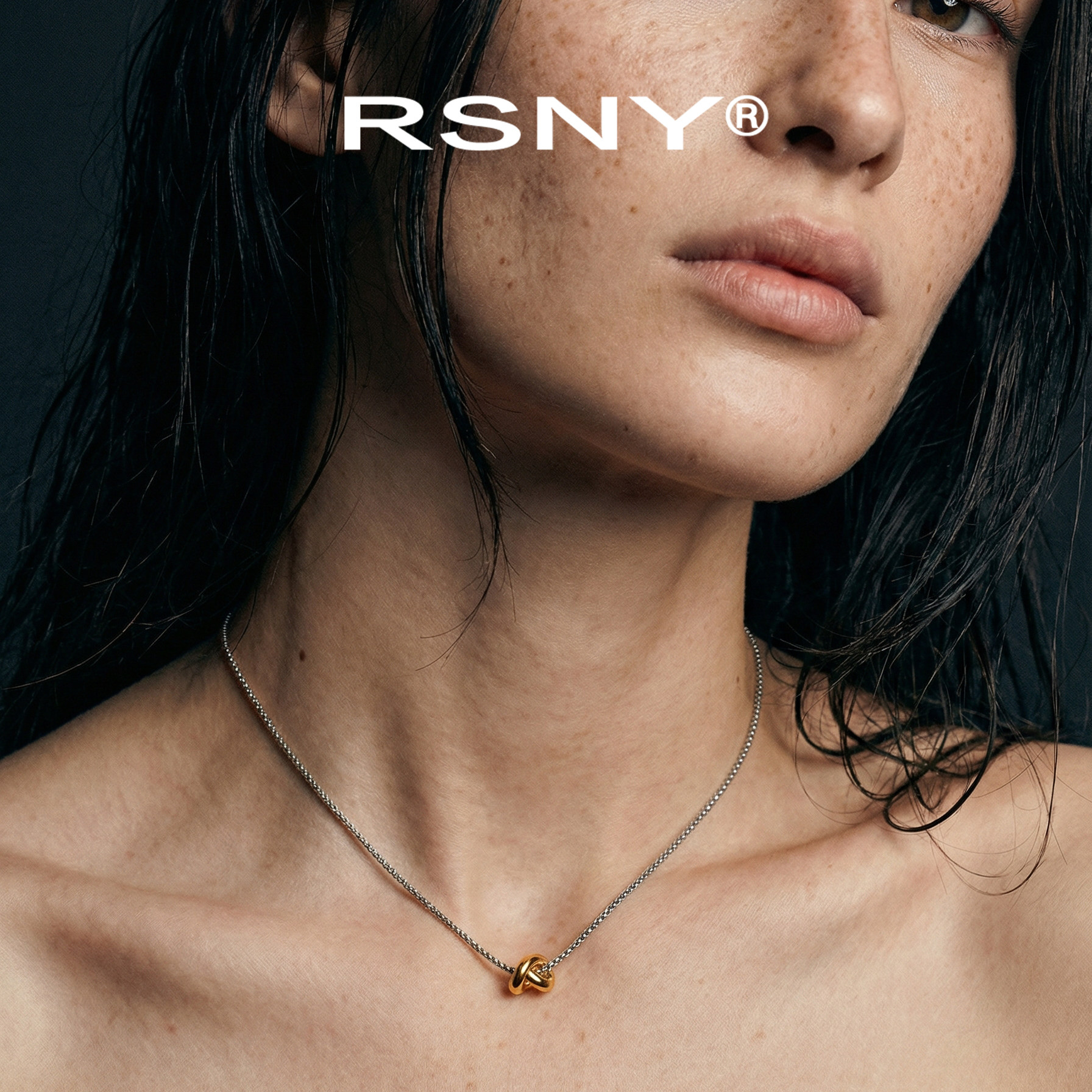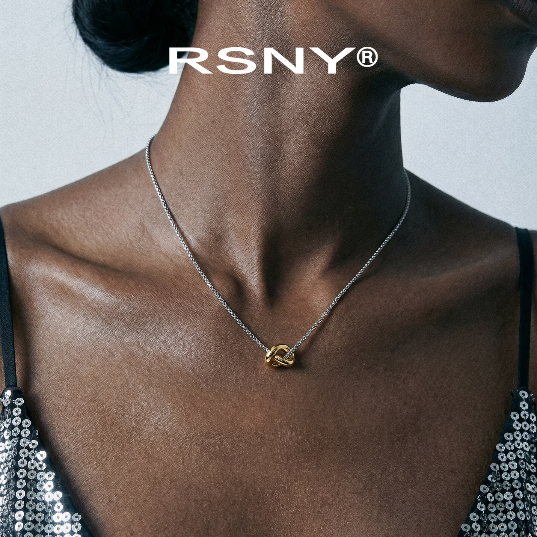 [新品]RSNY莫比乌斯之心双色项链通勤必备滑动吊坠简约亮银暖金