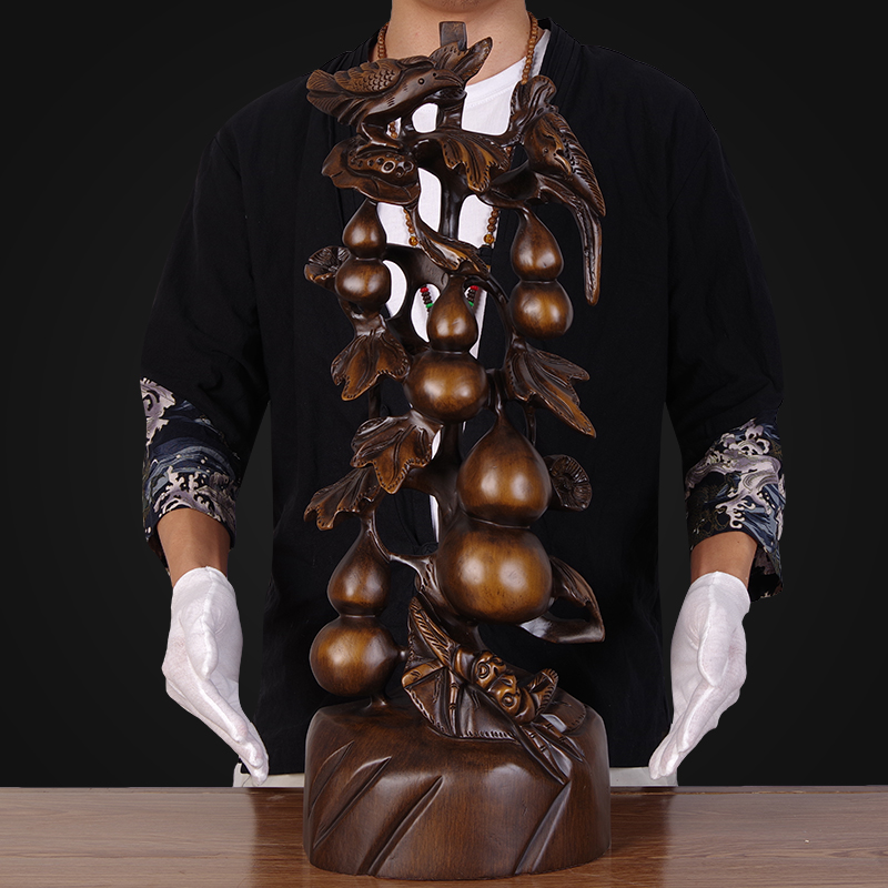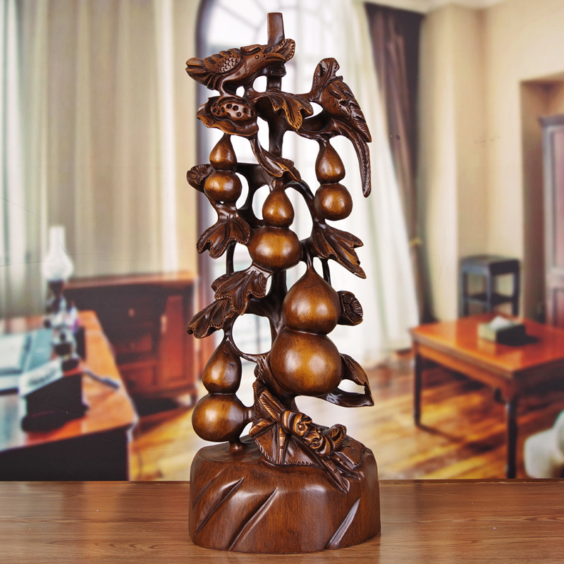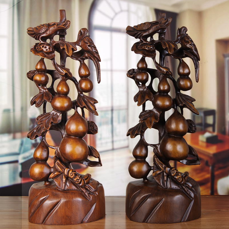 实木雕葫芦摆件招财中式家居客厅电视柜玄关博古架装饰品五福临门