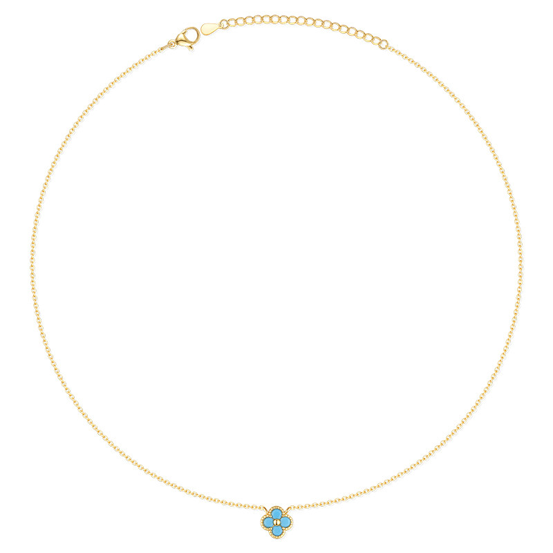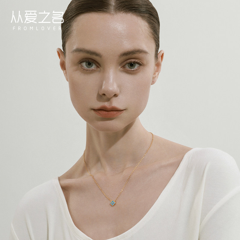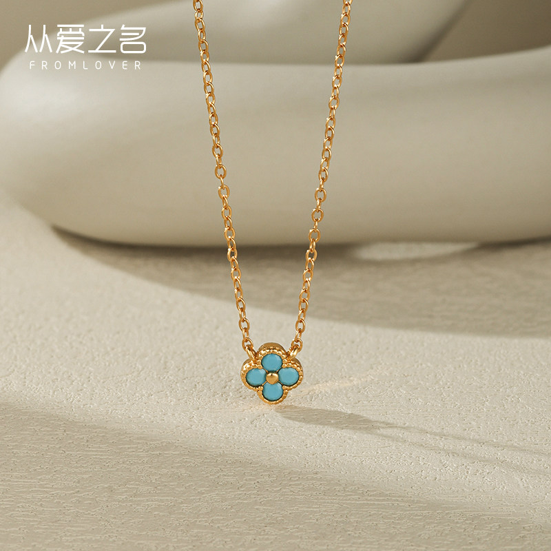 从爱之名蓝色四叶花项链女轻奢小众设计百搭高级感锁骨链