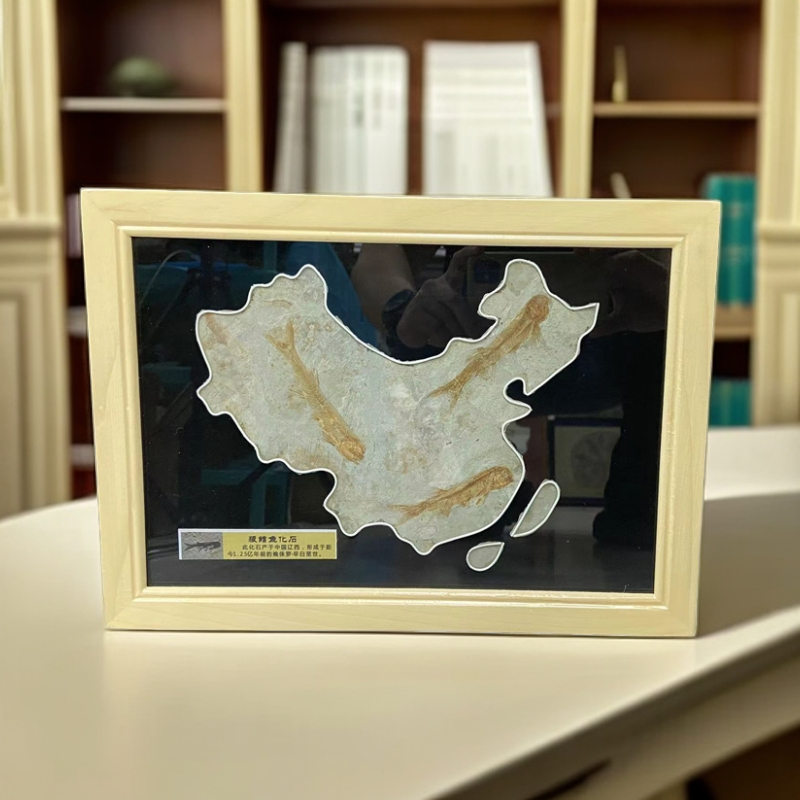 创意纯手工天然古生物狼鳍鱼化石原石标本地图礼品新中式摆件