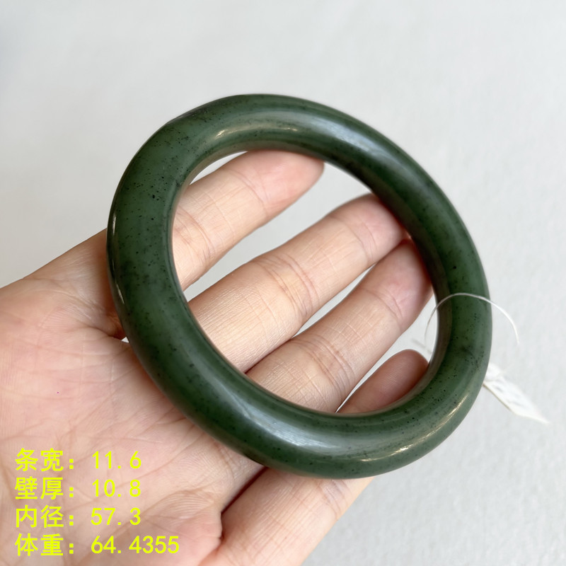 N57.3 和田玉碧玉籽料双原皮圆条美人镯 朕®开仓