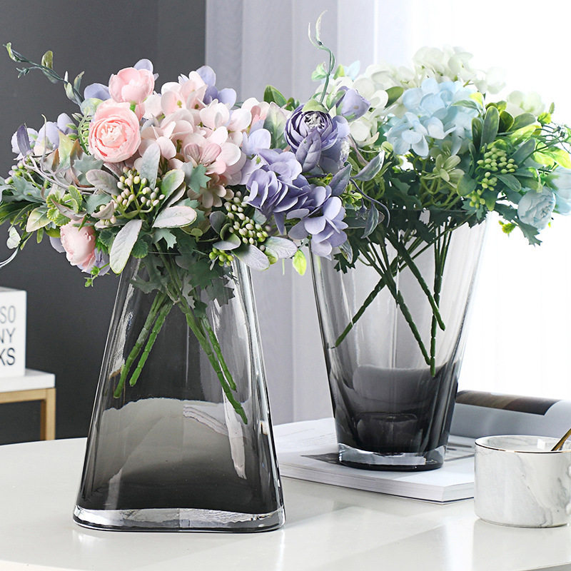 2025新款创意烟灰色玻璃轻奢花瓶客厅插花家居装饰现代简约餐桌