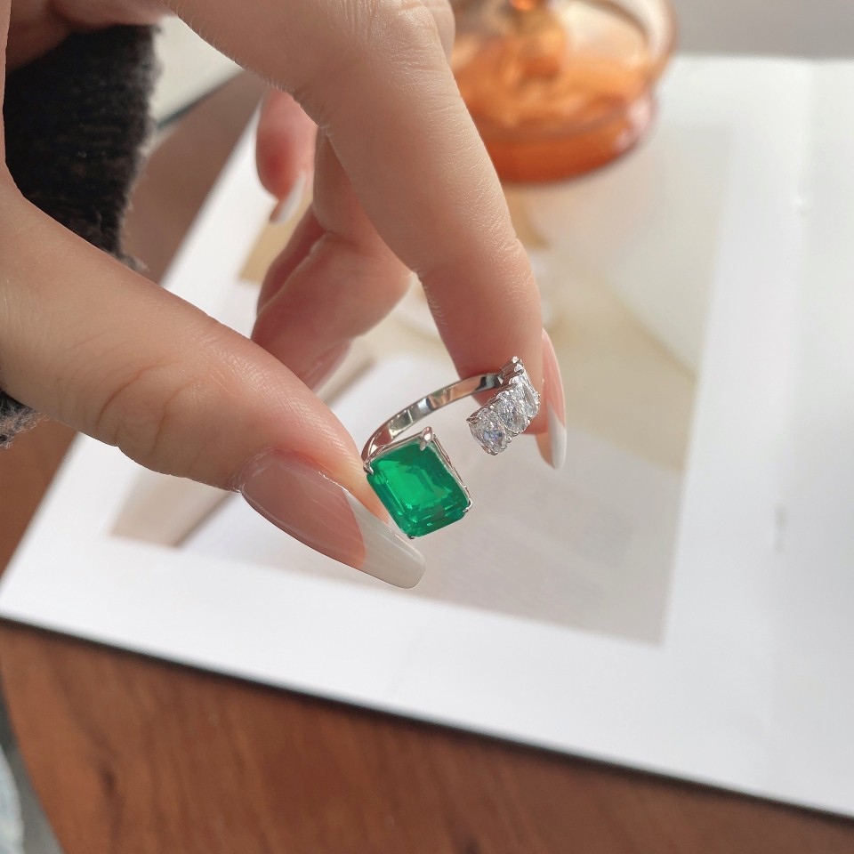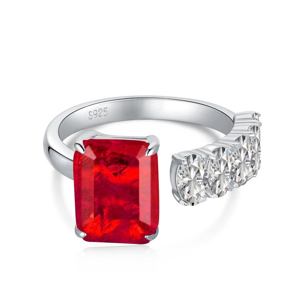 当前位置:首页>商品详情>欧美跨境直播S925纯银戒指复古高级感仿祖母绿红色锆石宝石开口戒
