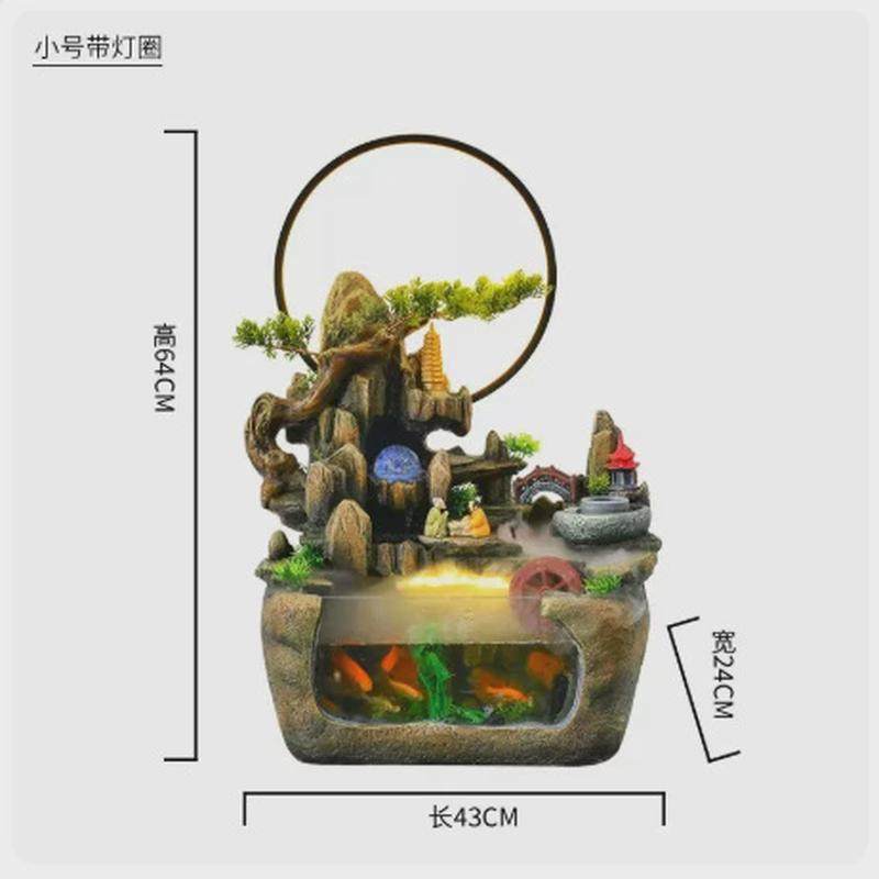 假山流水喷泉鱼缸现代创意高山流水摆件客厅阳台庭院花园落地装饰