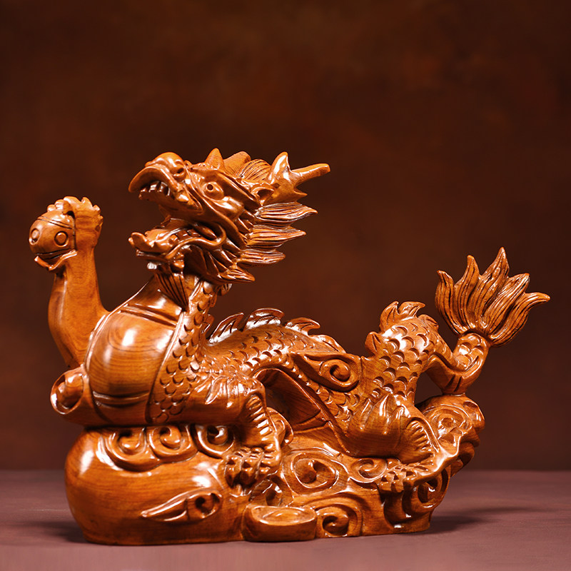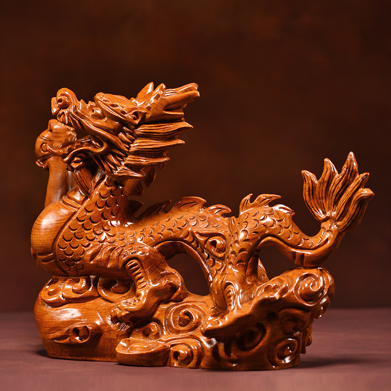 花梨实木雕刻龙摆件生肖龙青龙家居客厅办公室店铺开业红木工艺品