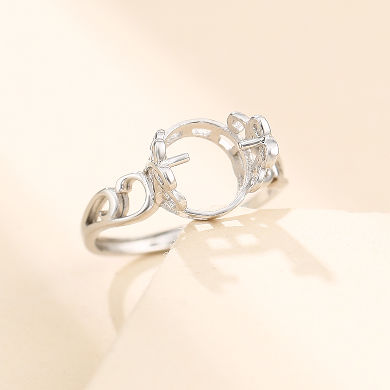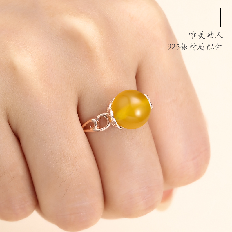 925纯银珍珠戒指空托女网红ins简约个性珍珠戒托空托玉石翡翠戒托