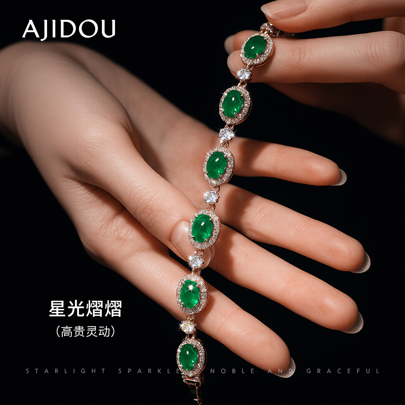 AJIDOU阿吉豆手链女款玉髓绿色玛瑙手串高级感宝石串珠官方手饰品